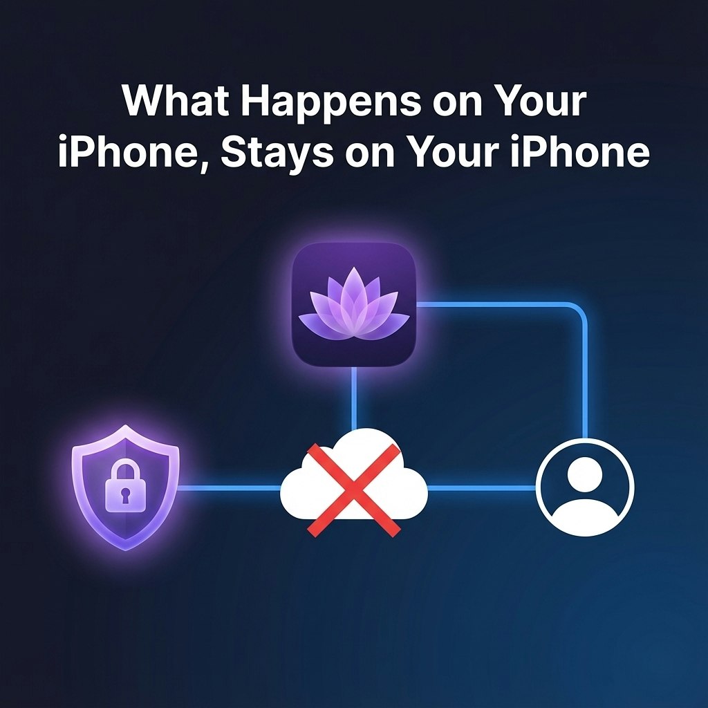 LumiはiPhone上で100%動作するプライバシー重視のウェルネスAI。クラウド不要、HealthKit連携、睡眠・歩数が気分に与える影響の可視化、 CBT準拠の共感AI、デジタルサンクチュ...