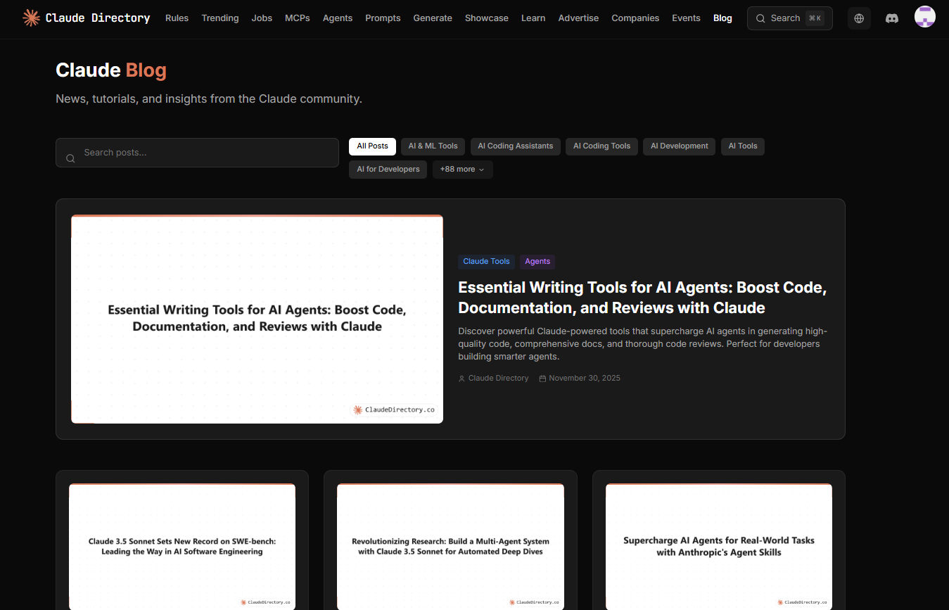 Claude Directory は Claude 愛好家向けの無料コミュニティ。ルールの探索・生成、MCPの閲覧、AIジョブの検索、プロンプトの発見など、Claude コミュニティに役立つリソ...