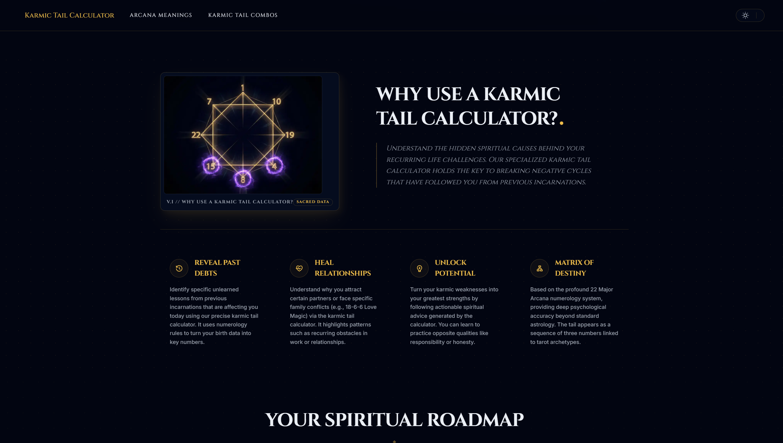 カルミック・テイル計算機 | 運命のマトリクスを解読する無料デコーダ