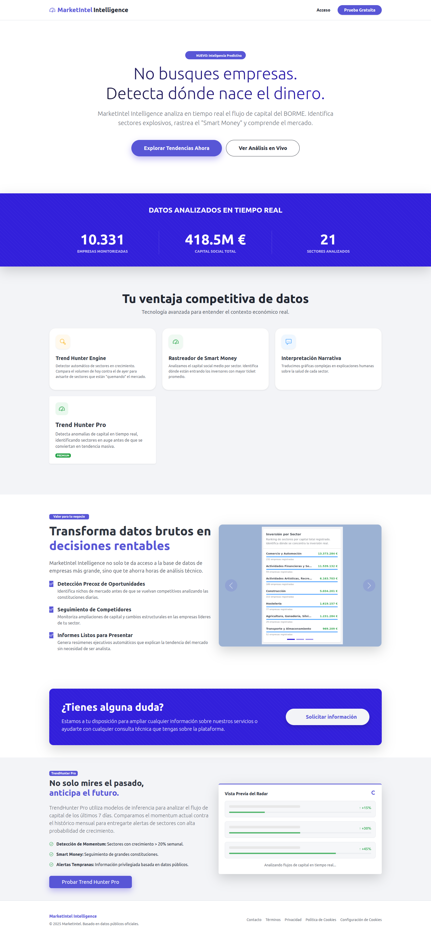 AI駆動のMarketIntelは、BORMEなど公式登録簿のリアルタイム資本動向を追跡して、見出しになる前の新興トレンドを検出します。NLPとコサイン類似度を用いて企業のスケーラビリティと競争...