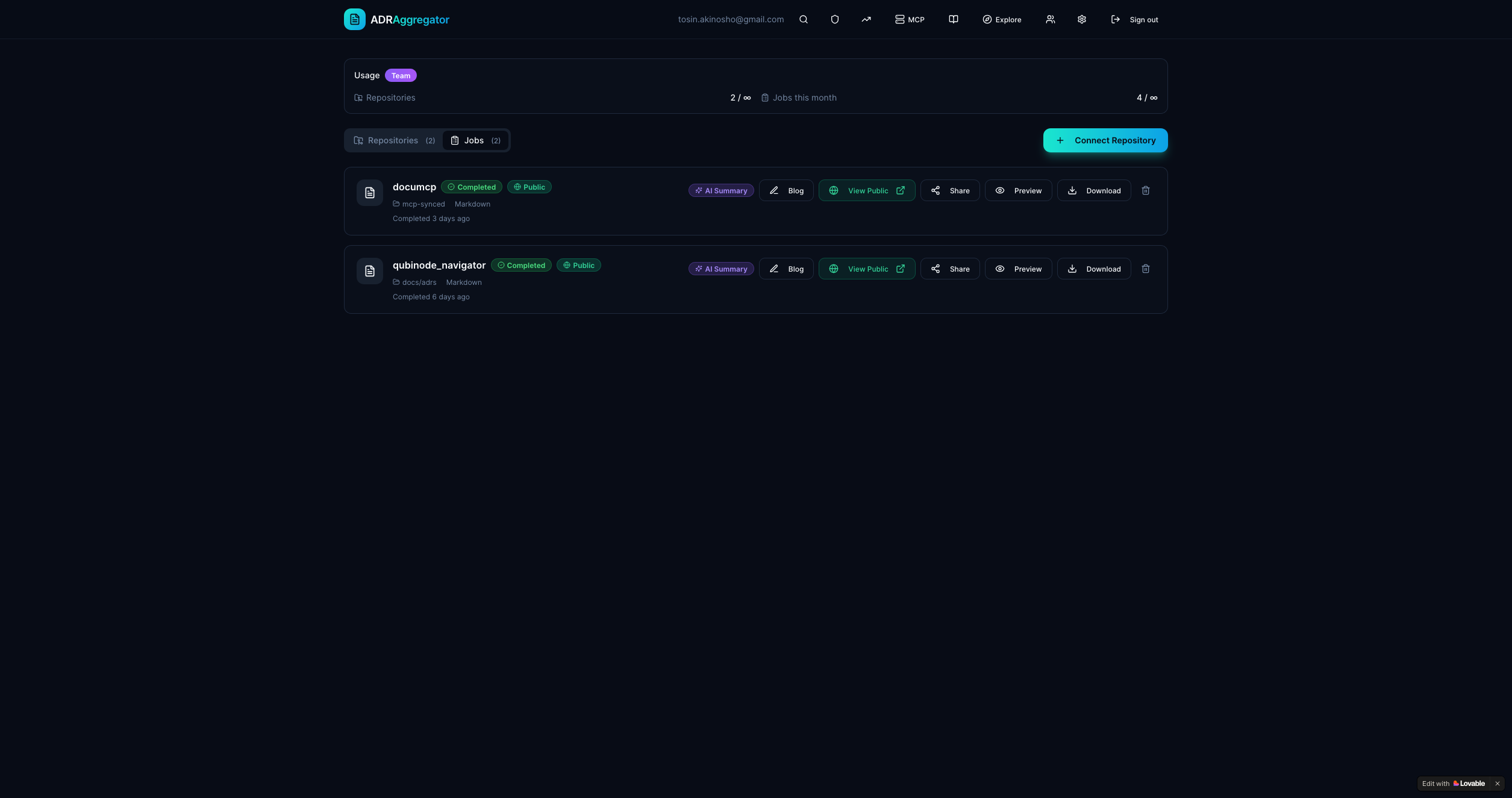## 製品概要 ADR Aggregatorは、散在するアーキテクチャ決定記録を1つの文書に統合し、共有しやすくするツールです。 ## キー機能 - GitHub 連携でADRを自動検出 - ...
