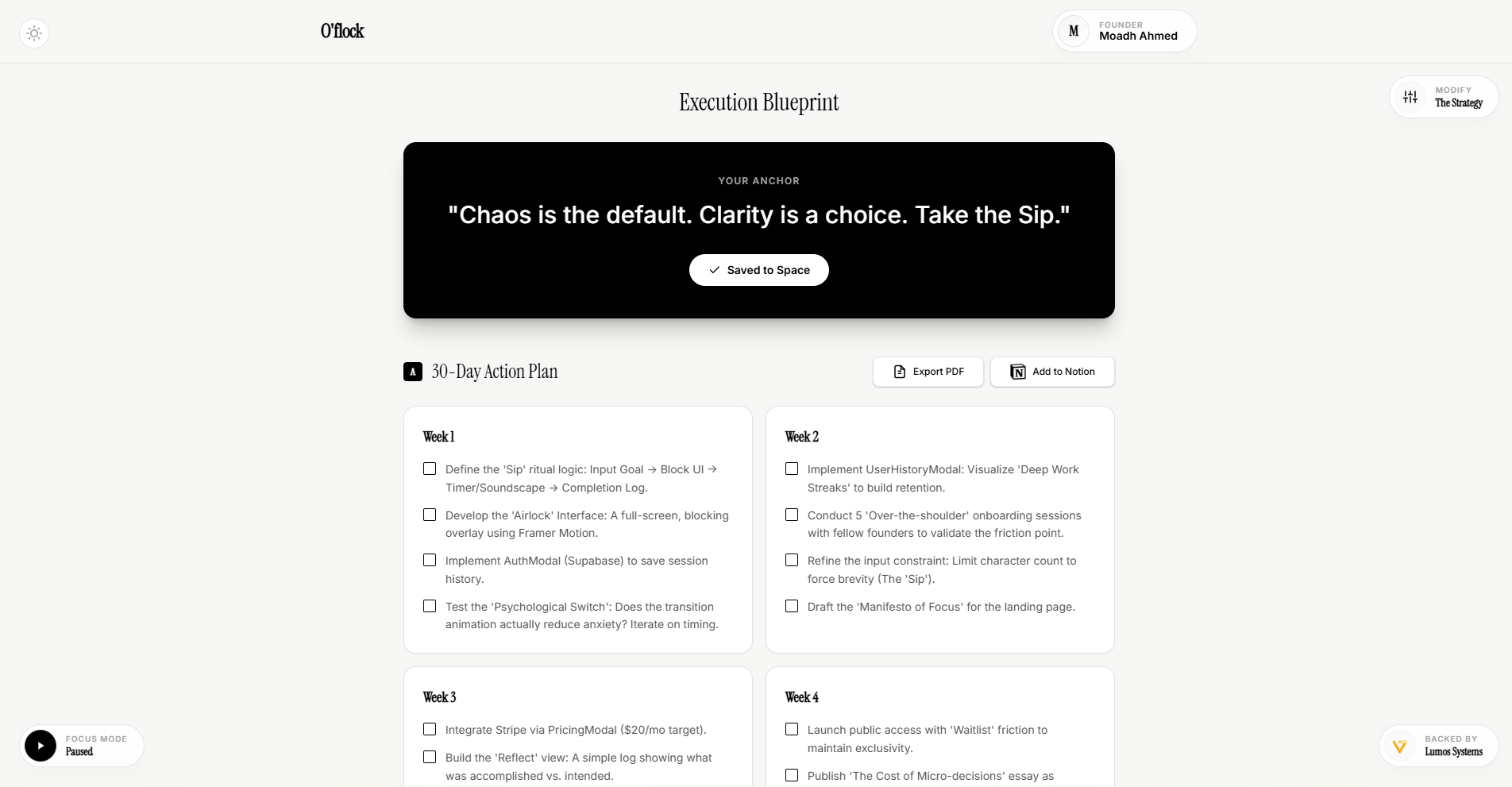 ## 概要 O'flock は創業者の本来のミッションを見つけるため、深い内省を促す問いを組み込んだ心理学的AI共同創業者です。従来の目標設定ツールとは異なり、明確さの前提条件で心構えを整えた上...