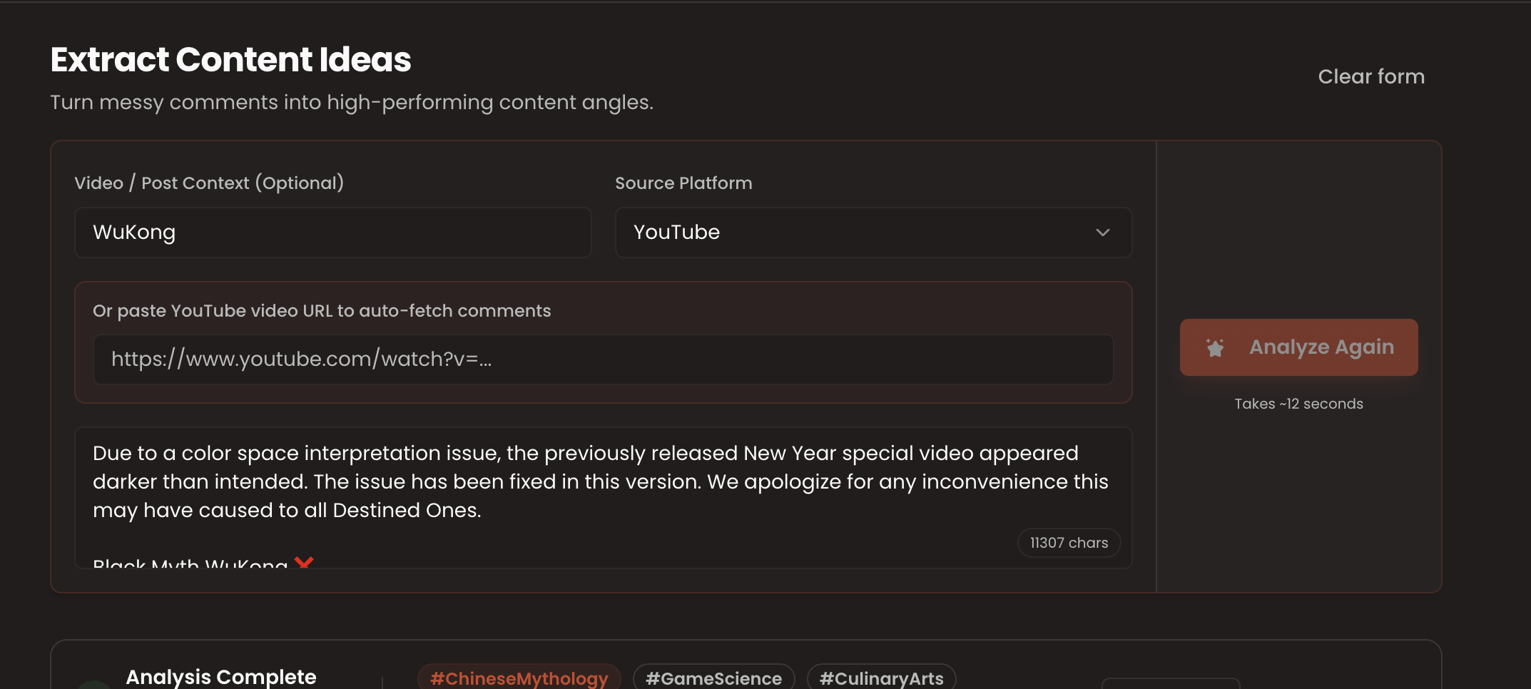 ## 概要 FanFuelは、コメントを元に次の動画アイデアを素早く生成するツール。YouTube・TikTok・Instagram・Reddit・Xのコメントを貼り付けるだけで、8〜12件の即...