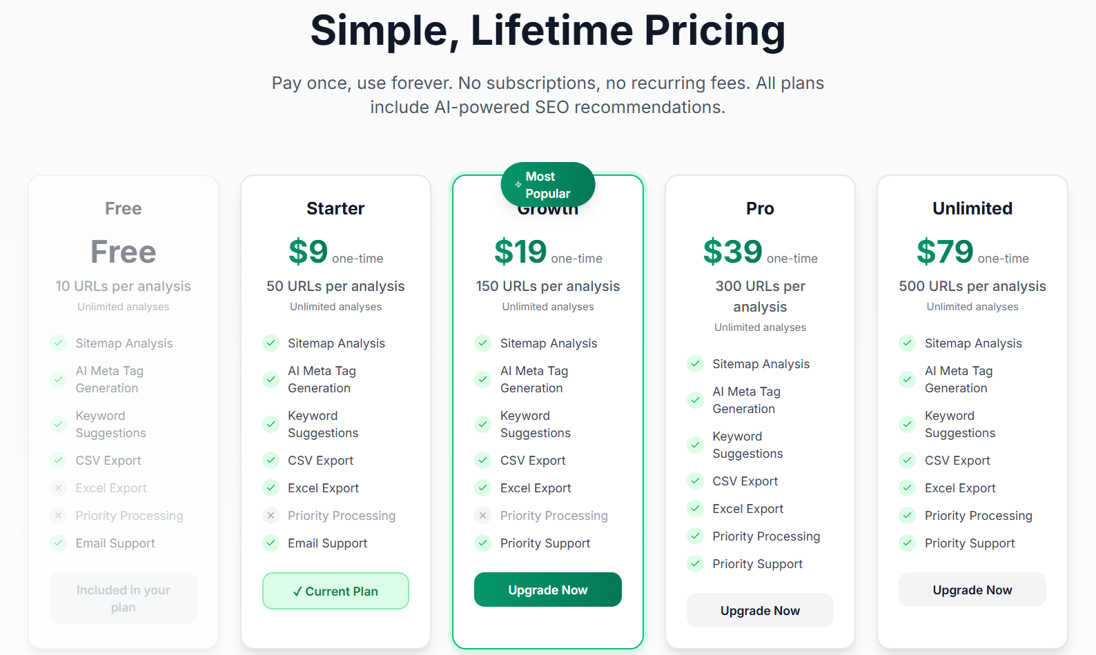 ## プロダクト概要 サイトマップを分析して、AIを用い全ページのメタタイトル(55–60字)、メタ説明(150–160字)、キーワードを自動生成します。Excel/CSVへ一括エクスポート可能...