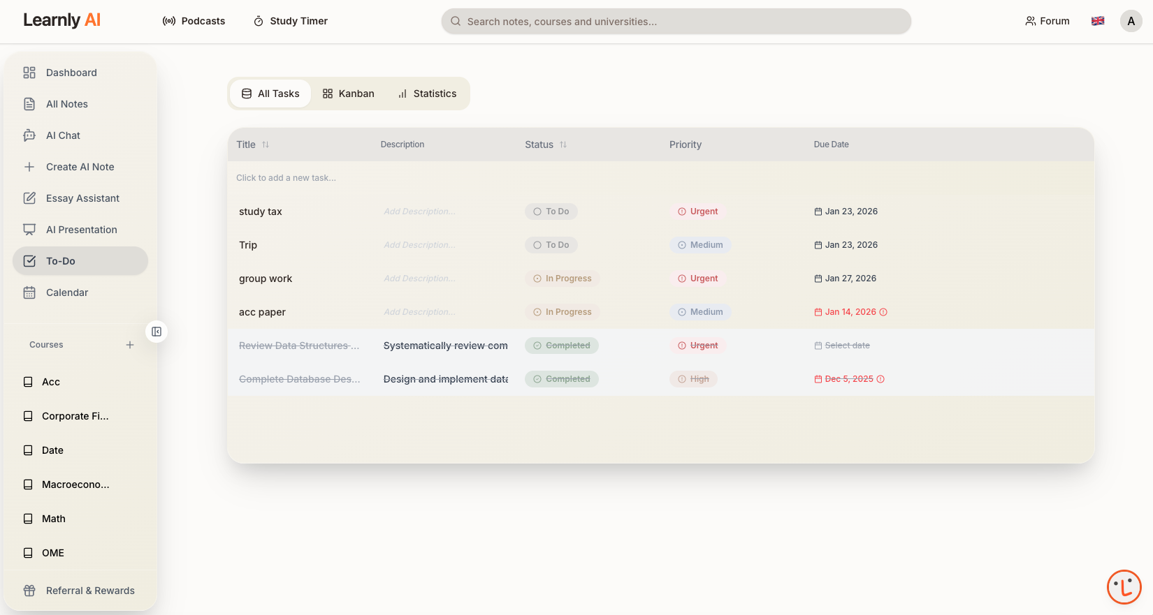 ## 概要 Learnly AIは、学生のノート作成・リサーチ・執筆・プレゼンを一つに統合した学習アシスタントです。学習を効率化し、フォーマット作業を自動化して集中を高めます。 ## 主な特徴...