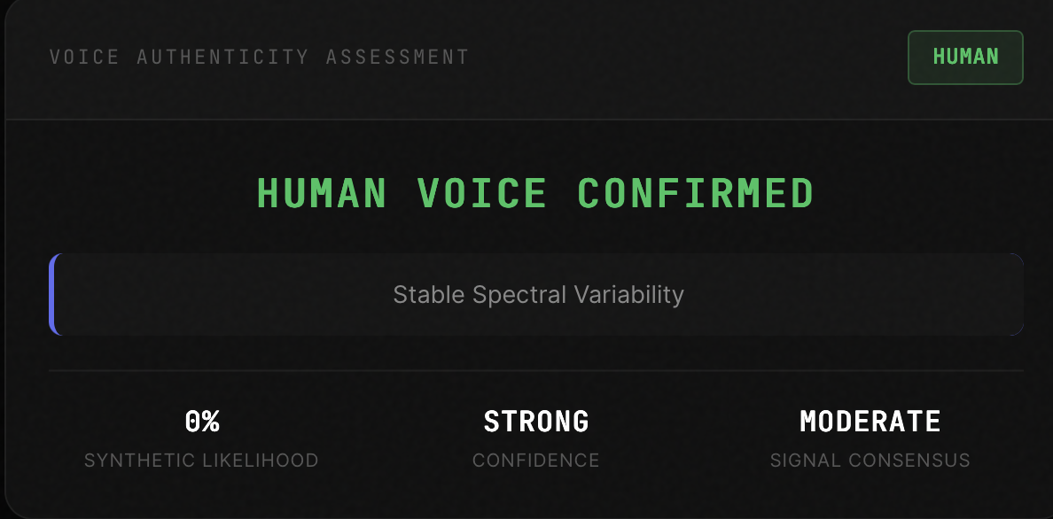 ## 概要 Humsana Swanは、体由来の音響署名とAI生成声の差を多様な音響信号領域の分析で検出する音声ディープフェイク検出ツールです。任意の音声ファイルをアップロードして、約2分で“人...