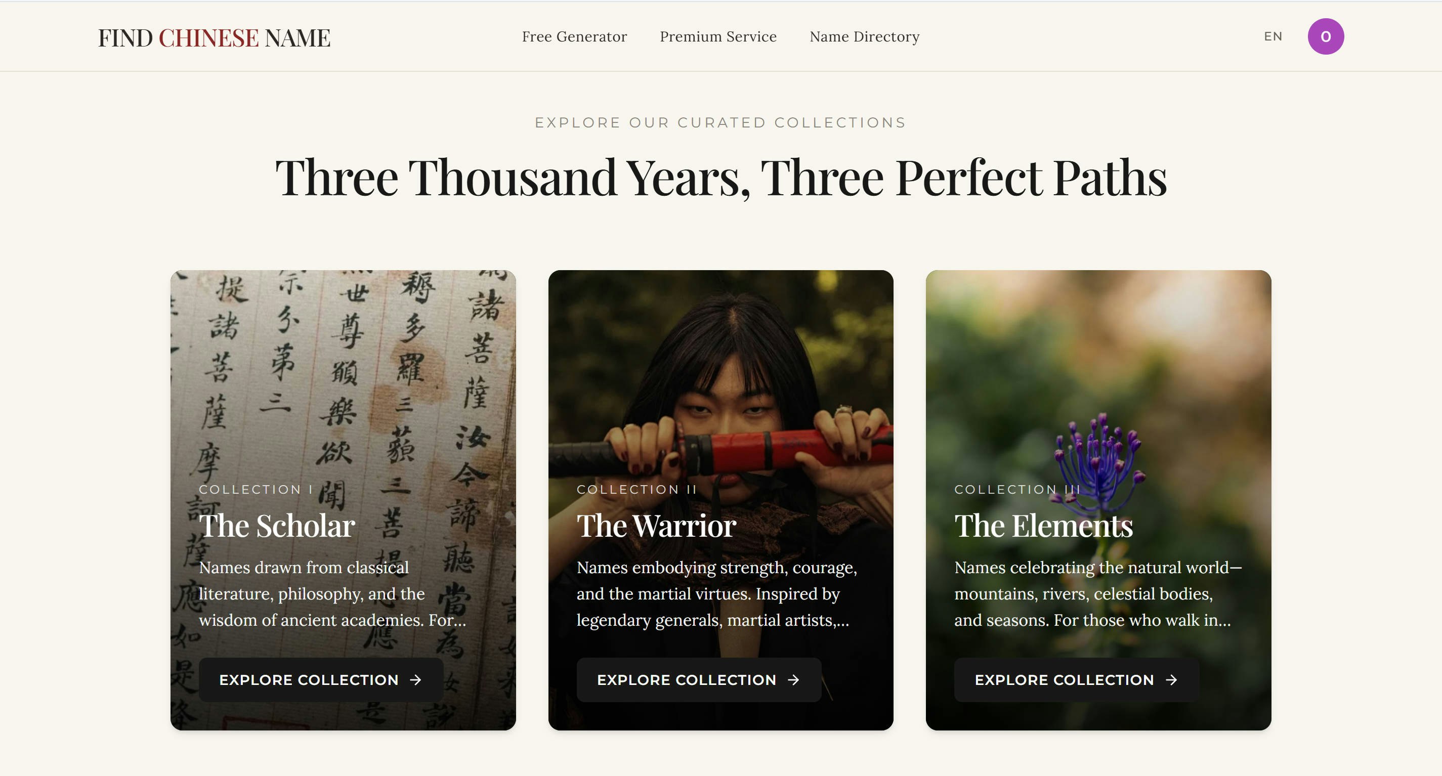 An AI-powered cultural bridge helping you find a deeply meaningful Chinese name. Explore characte...