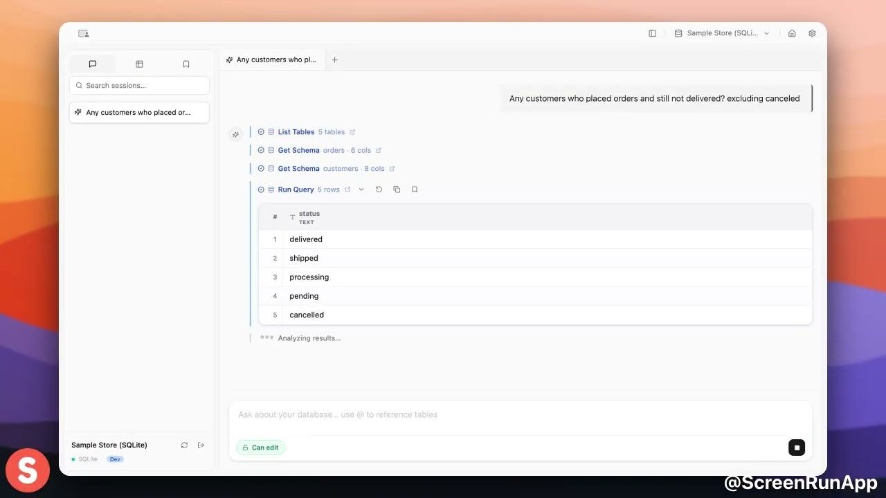 Seshat is an AI-powered database client for PostgreSQL/Supabase, MySQL/MariaDB, and SQLite. Ask q...