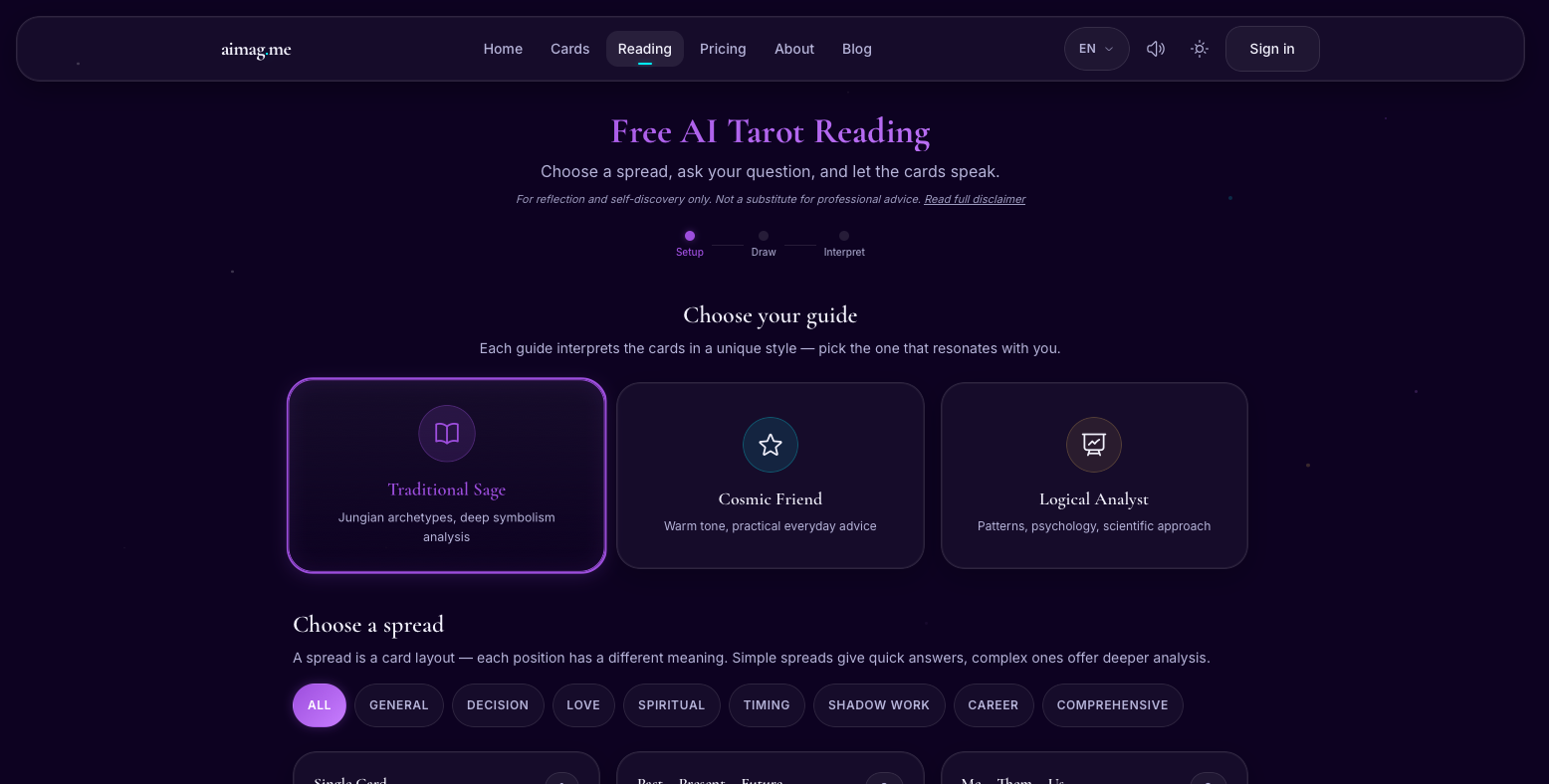 aimag.me is an AI tarot reading platform that combines ancient symbolism with modern psychology. ...