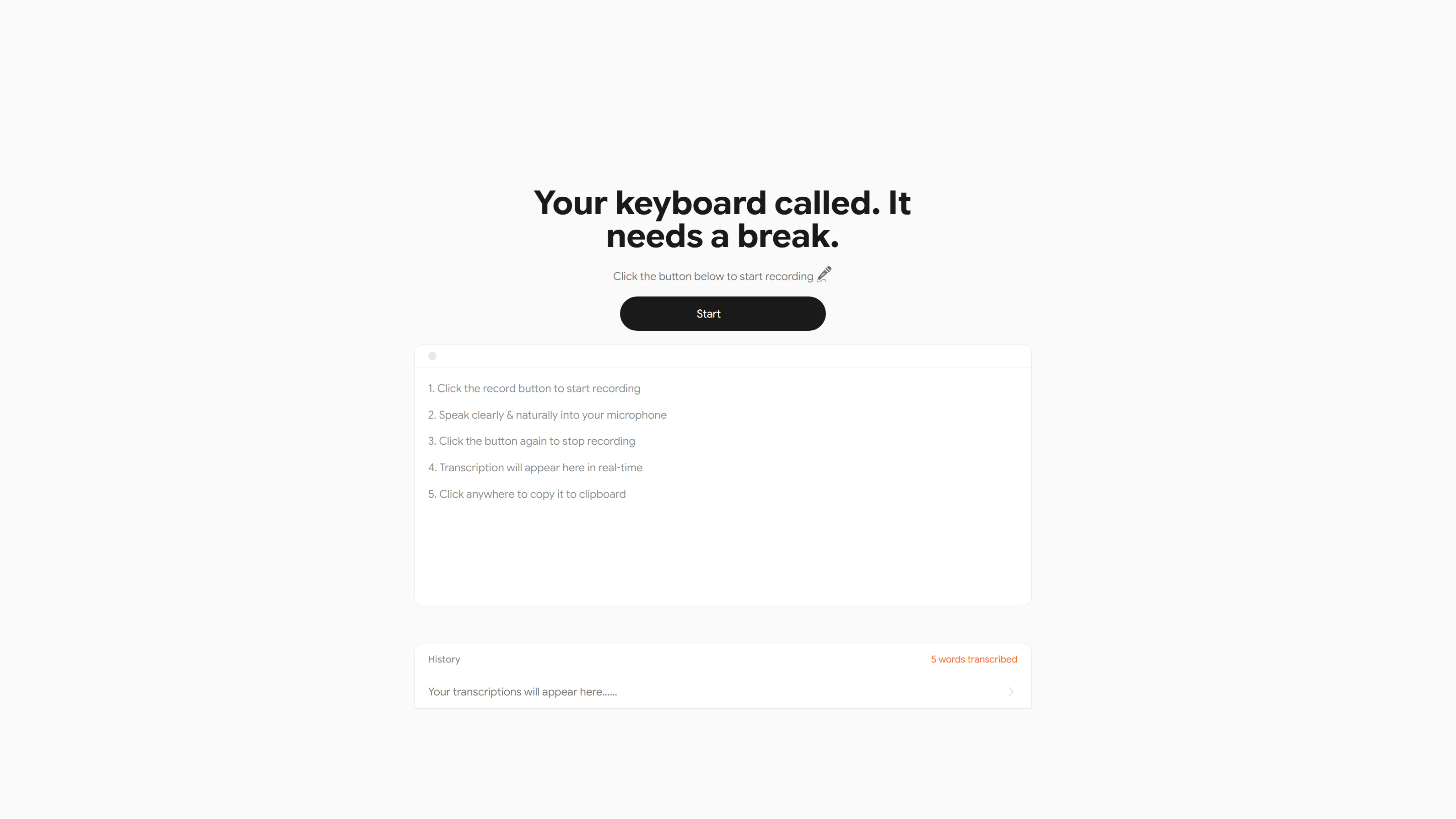 Speak → get text. No install, no setup.