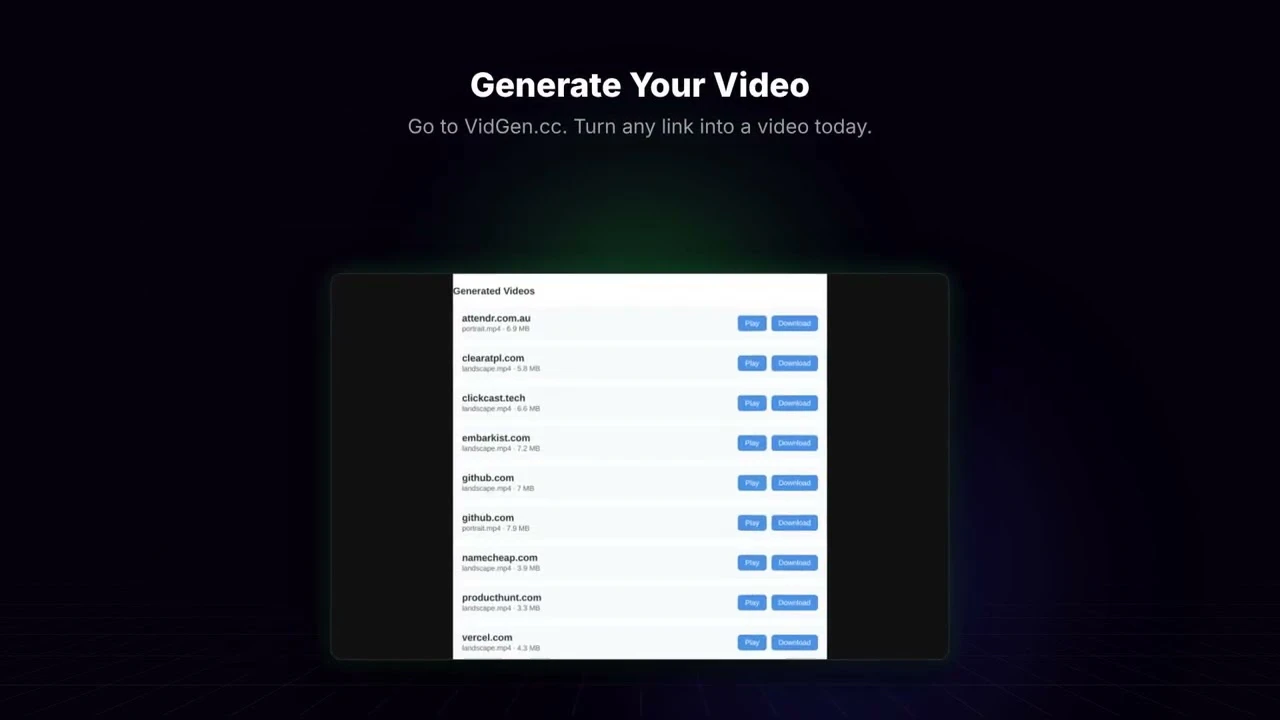 VidGen turns any website into a marketing video in minutes. No recording. No editing. Just paste ...
