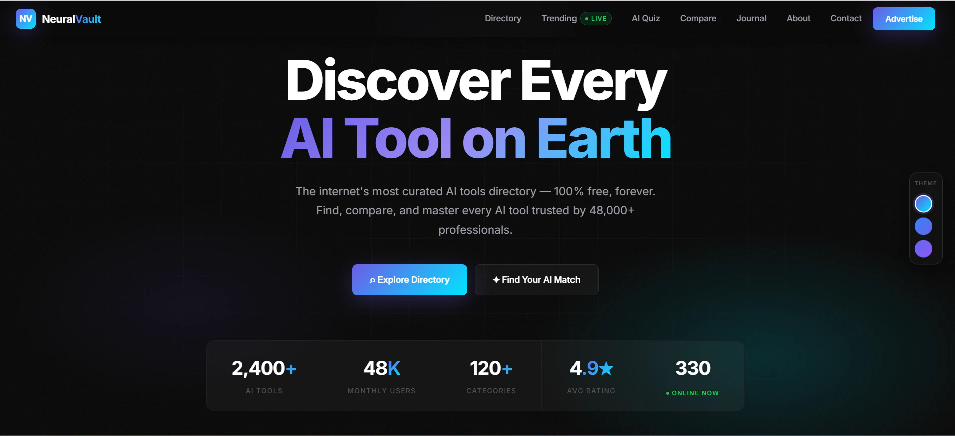 NeuralVault is a completely free AI tools directory with 120+ curated tools