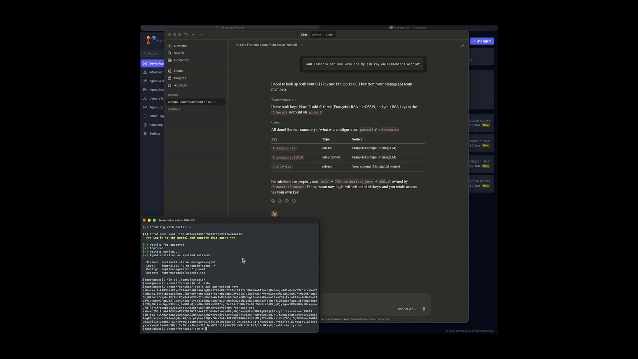 Manage Linux servers by talking to Claude. ManageLM agents run on your servers and execute tasks ...