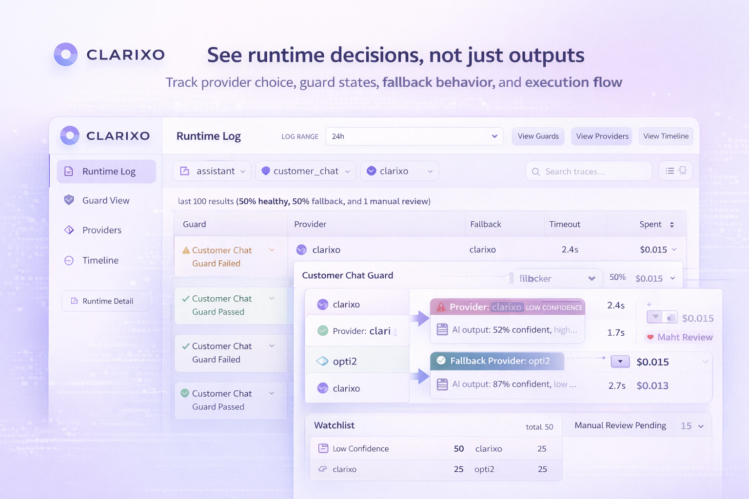 CLARIXO is an AI runtime layer that sits between apps and model providers. It adds routing, guard...