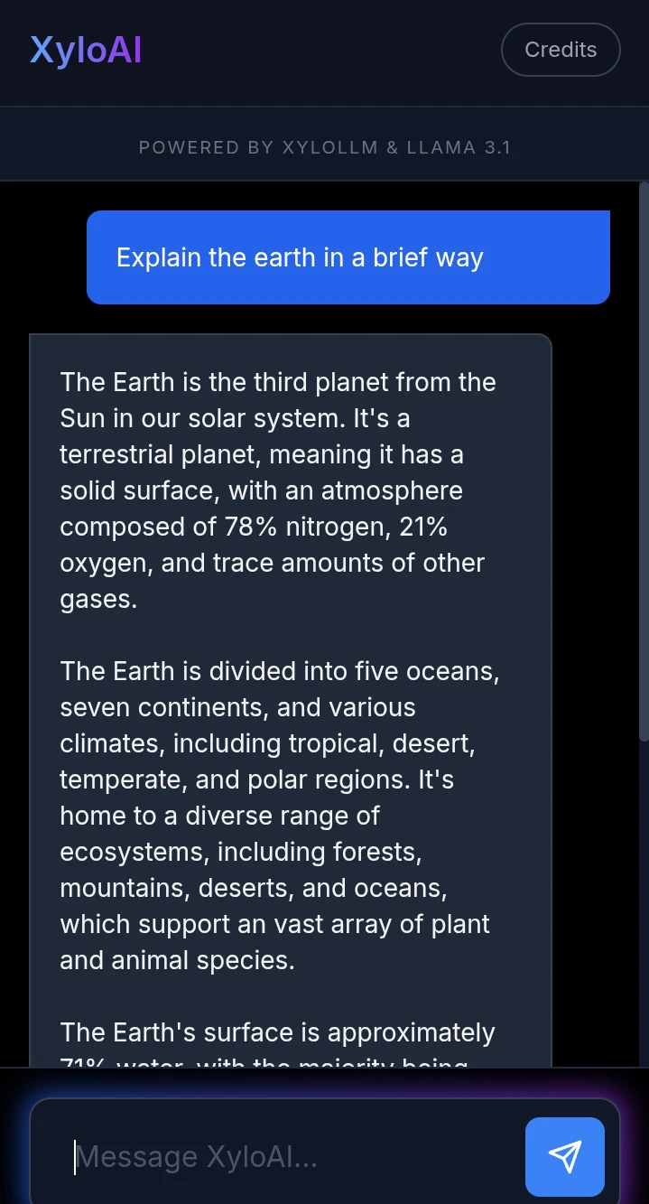 Chat with XyloAI for free. Created by Xylo Tech Labs. Powered by XyloLLM and Llama 3.1 8b Instant...