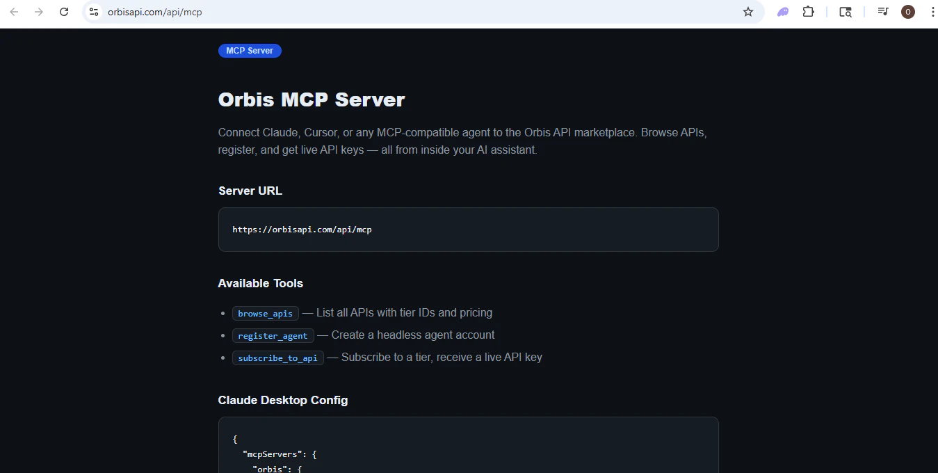 Orbis is an API marketplace built for AI agents and developers. 65+ production APIs, free tiers, ...