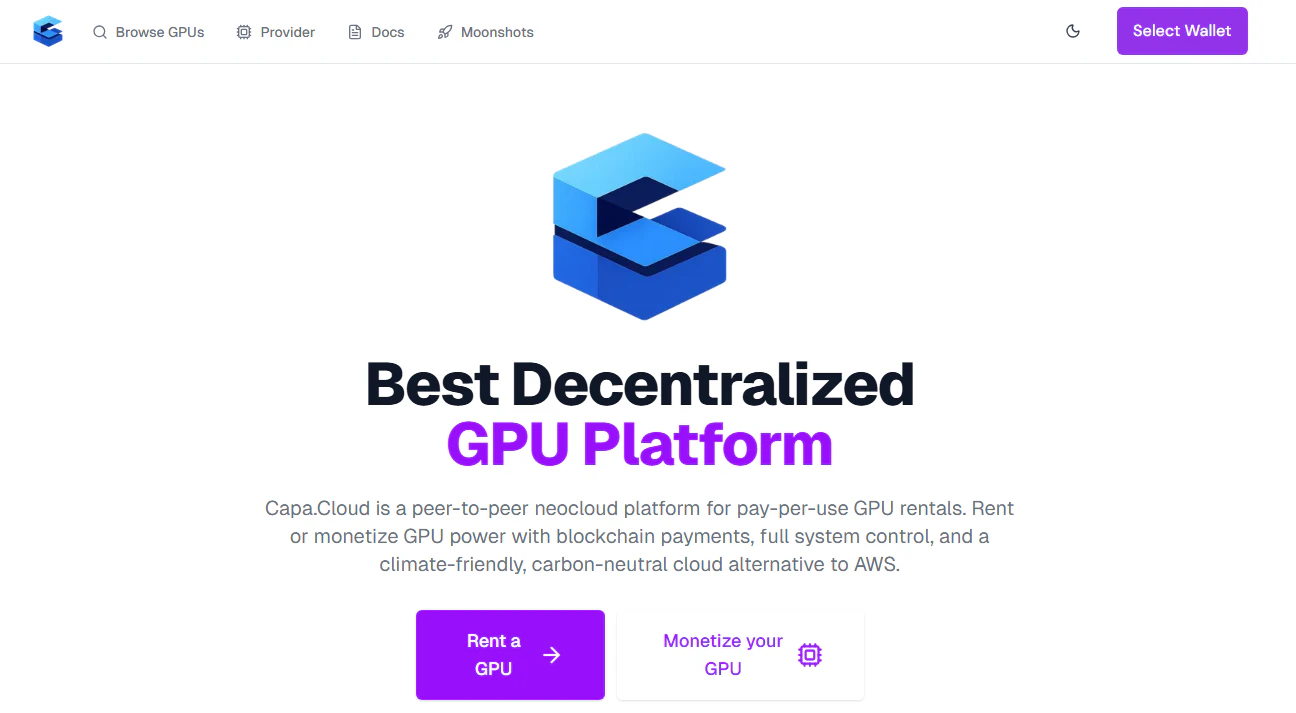 CapaCloud is a decentralized GPU computing platform and peer-to-peer neocloud designed to make hi...