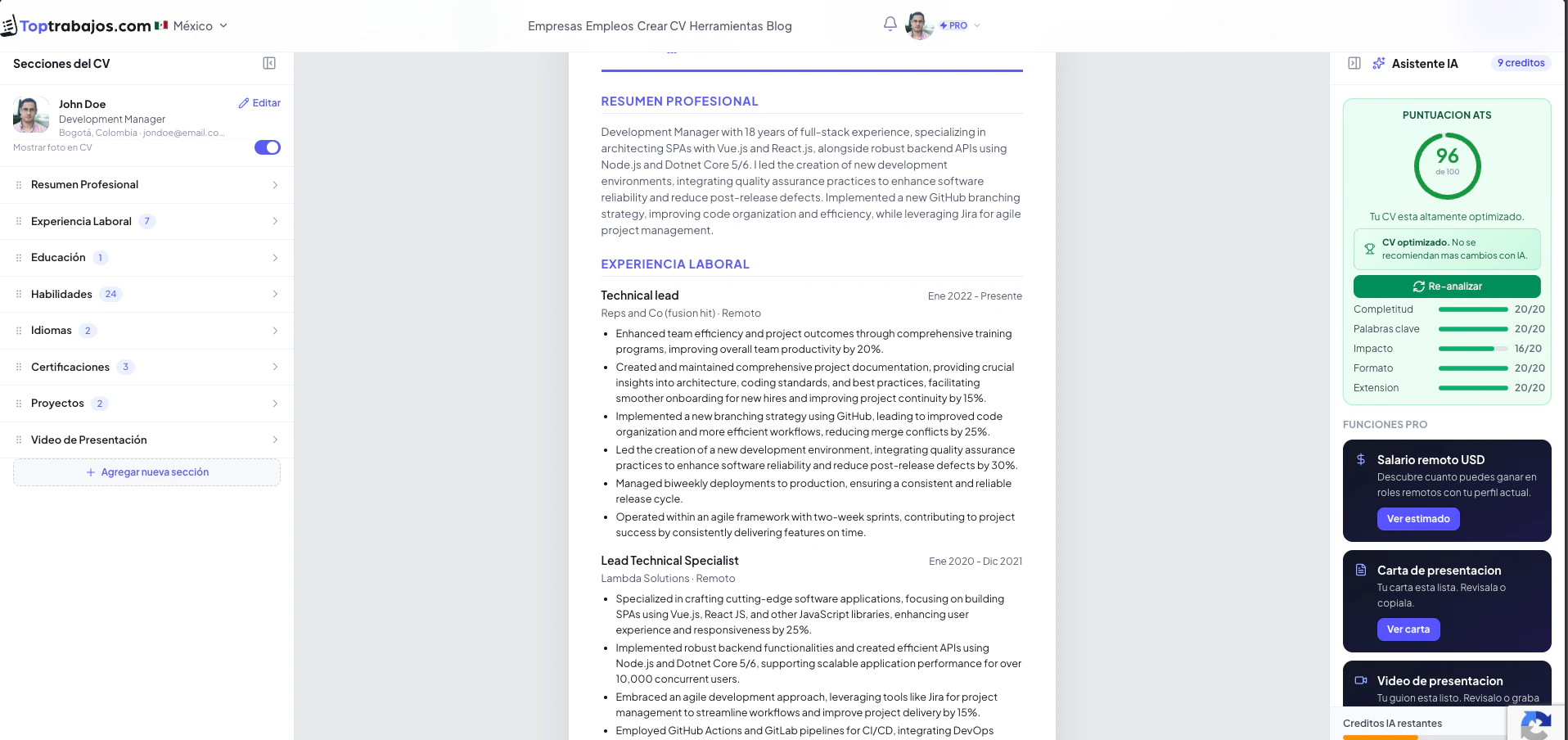 Free resume builder & job board for Latin America