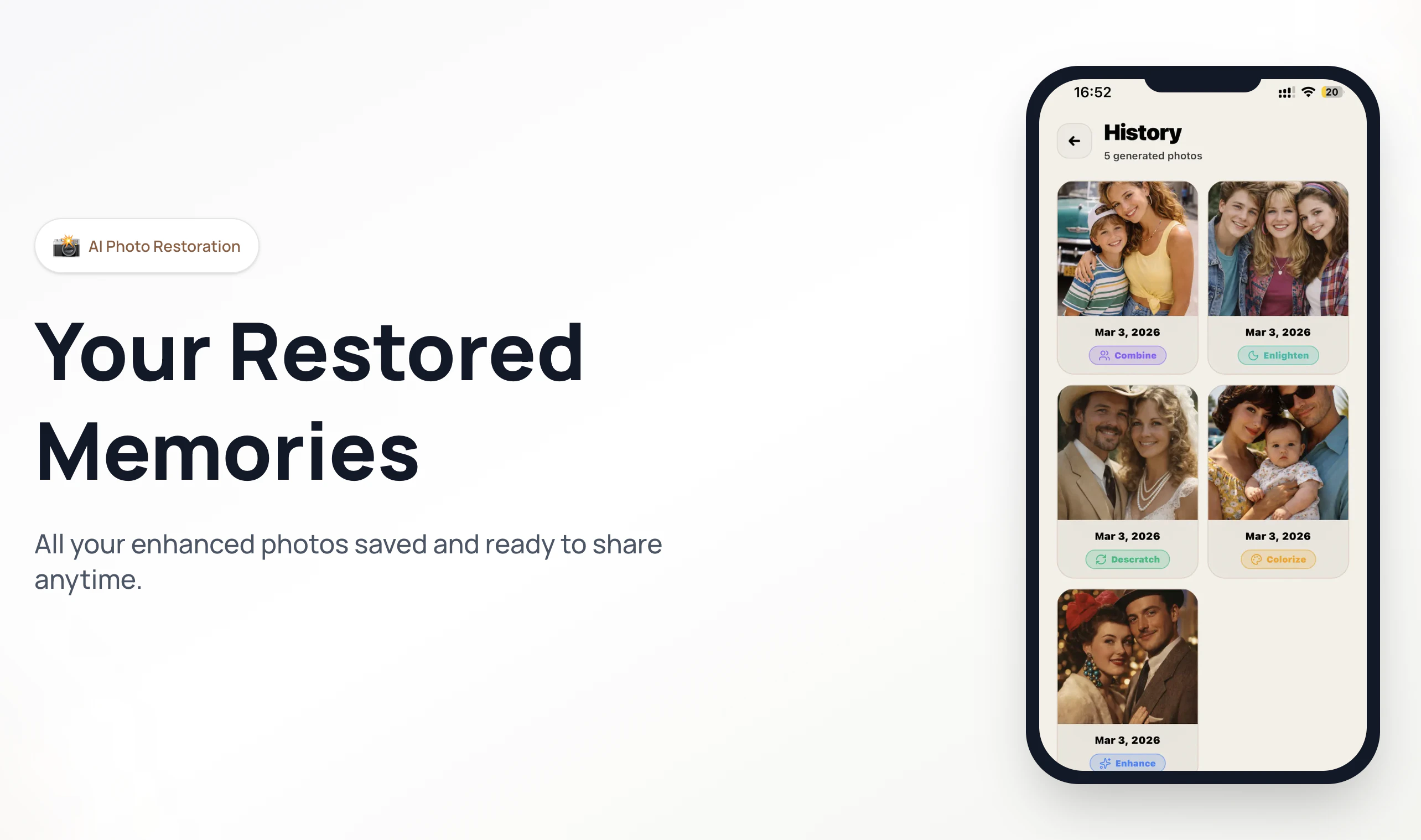 Fixa helps you bring old memories back to life. Restore faded, scratched, and damaged photos usin...