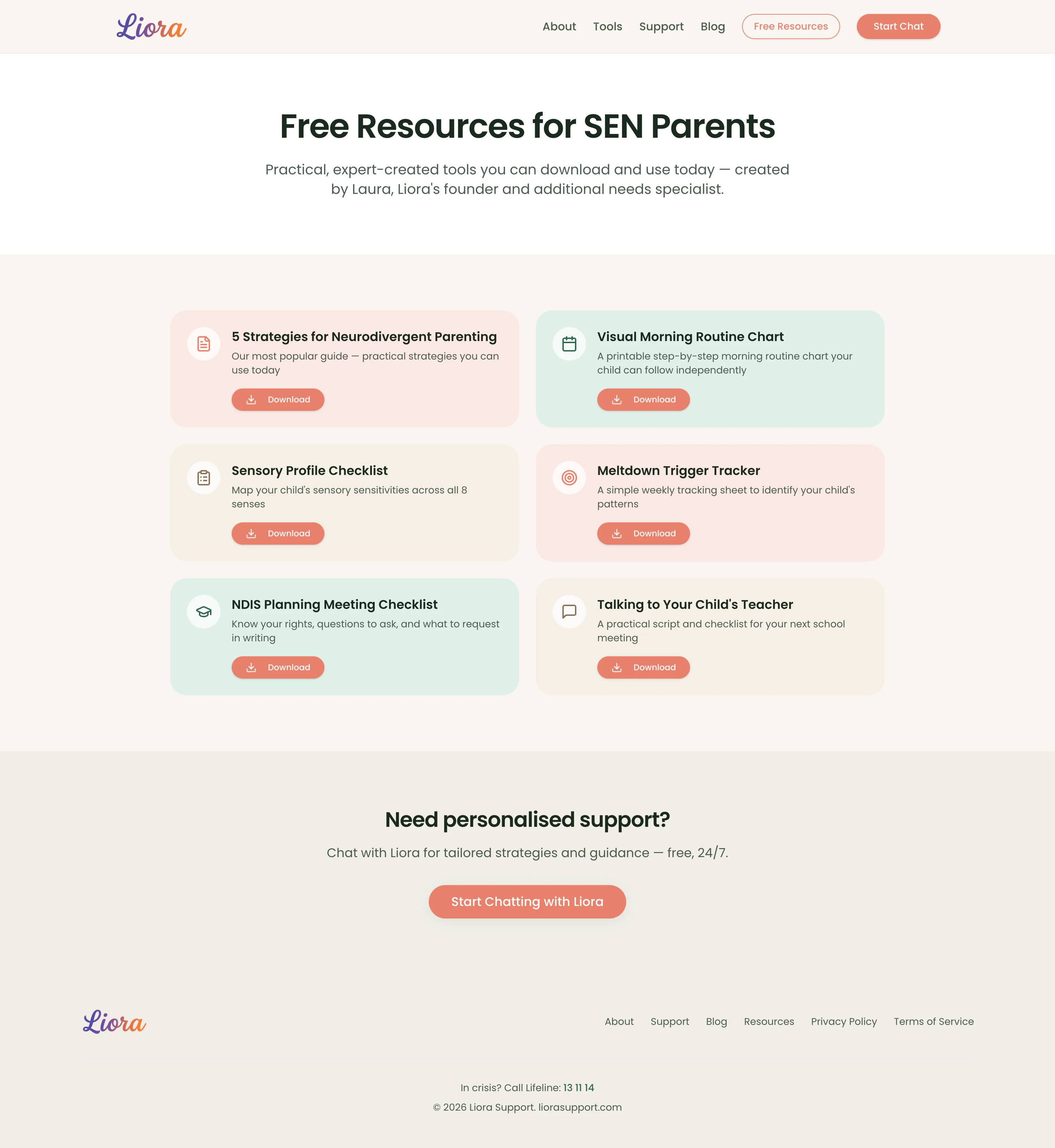 At 11pm when your child has just had a meltdown, there's nobody to call. Liora is a 24/7 AI compa...