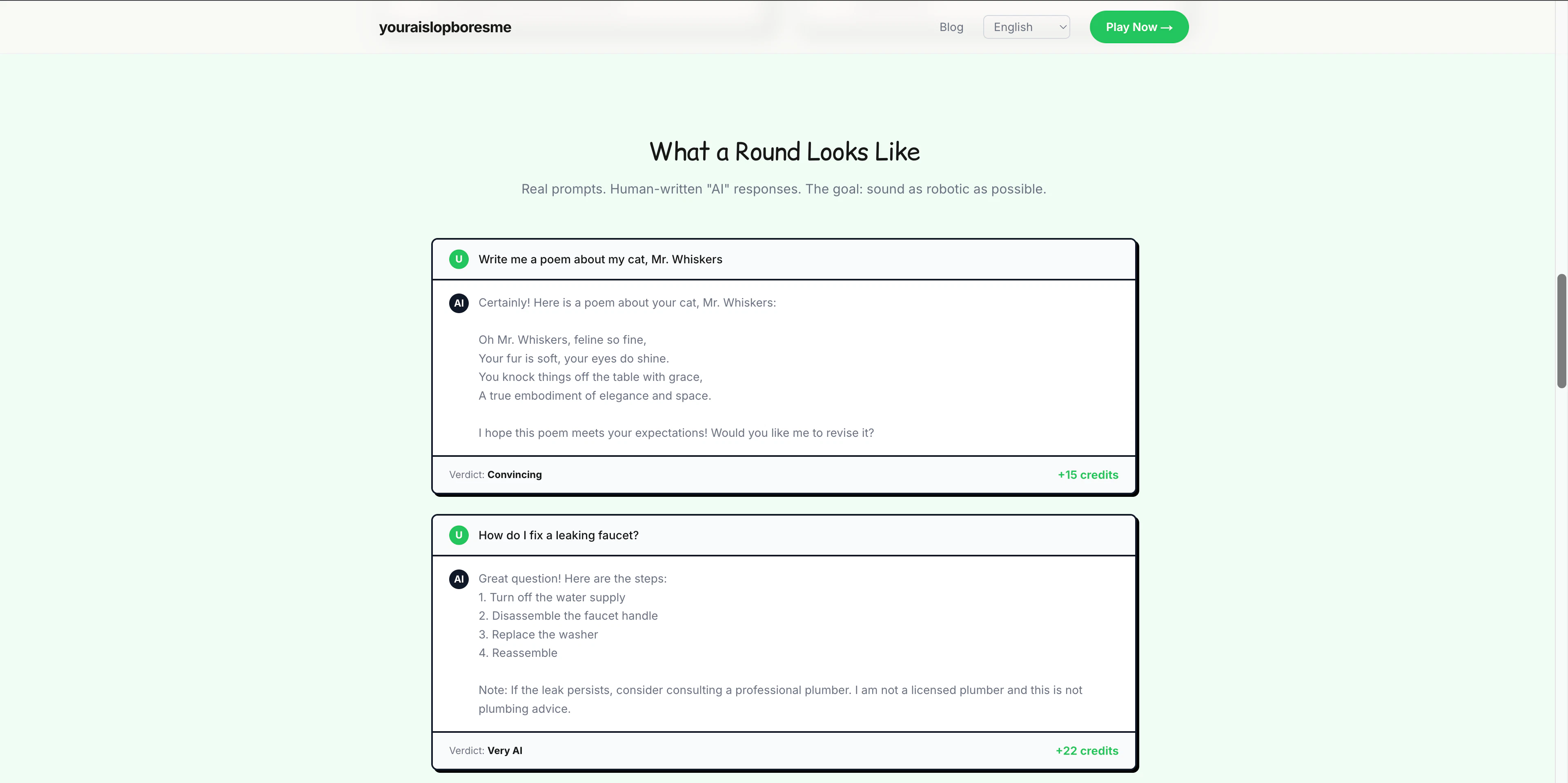 A real-time multiplayer game where humans role-play as AI. Submit prompts, answer like a chatbot,...