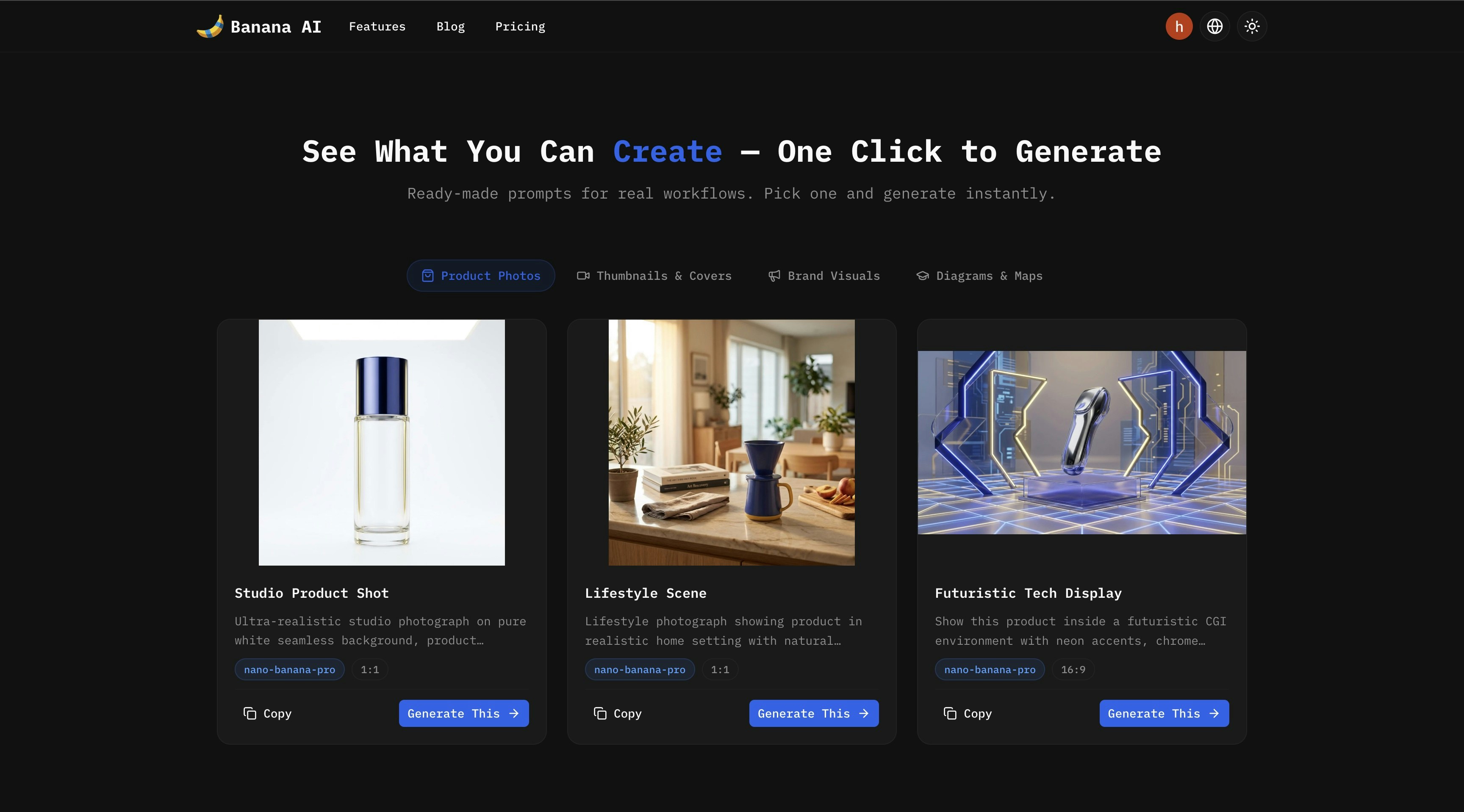 Banana AI turns conversations into commercial-quality images. Describe what you want, see the res...