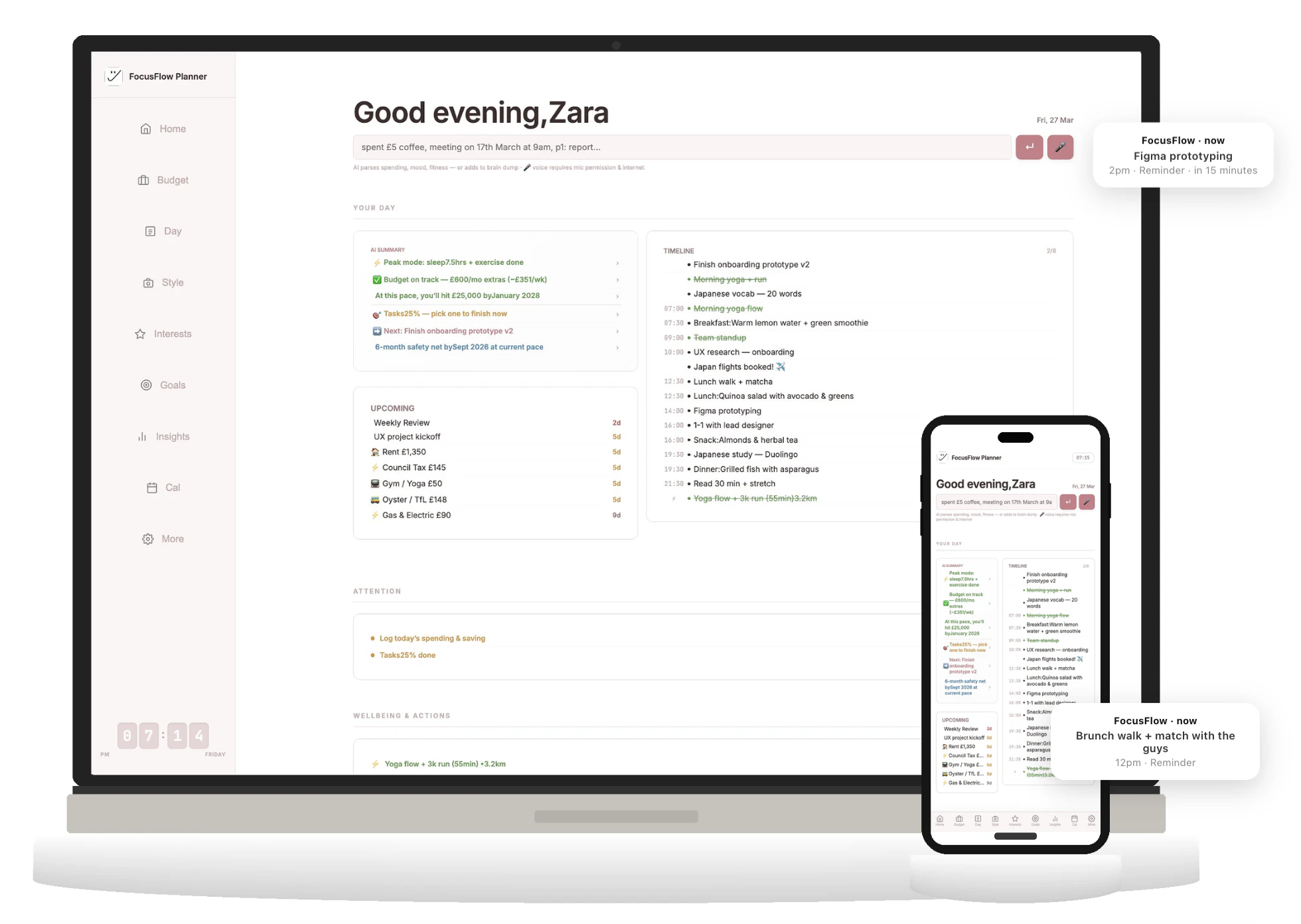 FocusFlow is an AI-powered life planner that connects your budget, schedule, goals, meals, fitnes...