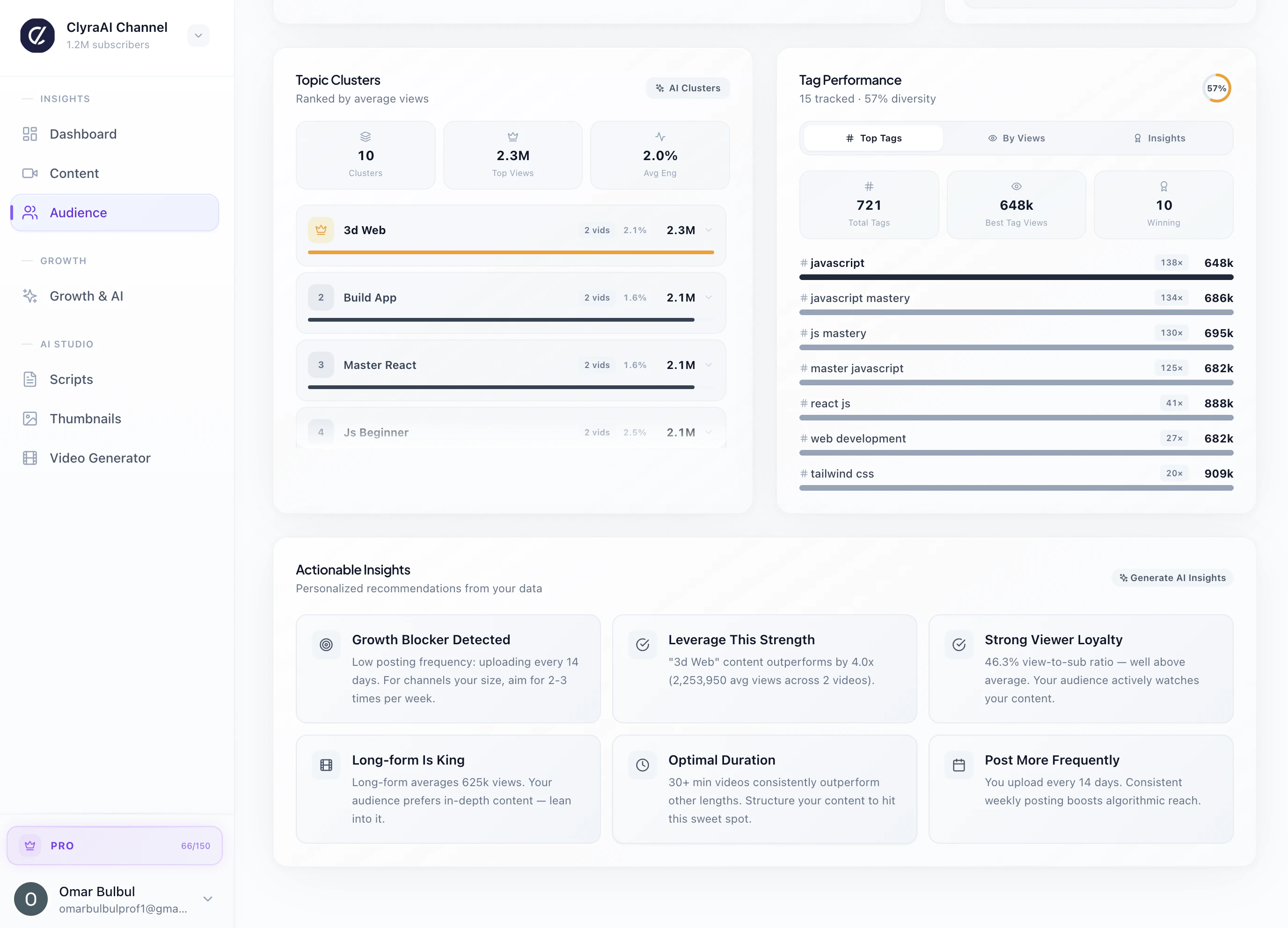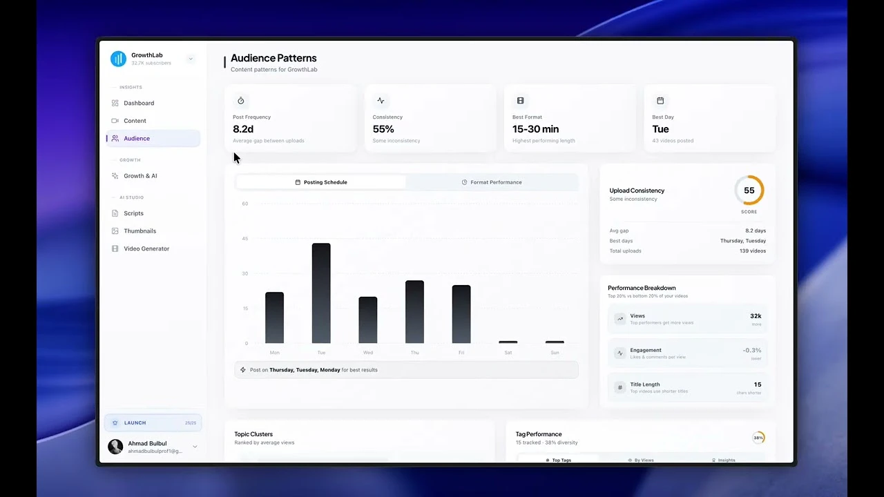 ClyraAI analyzes your YouTube channel to find what’s holding your videos back. Instead of dashboa...