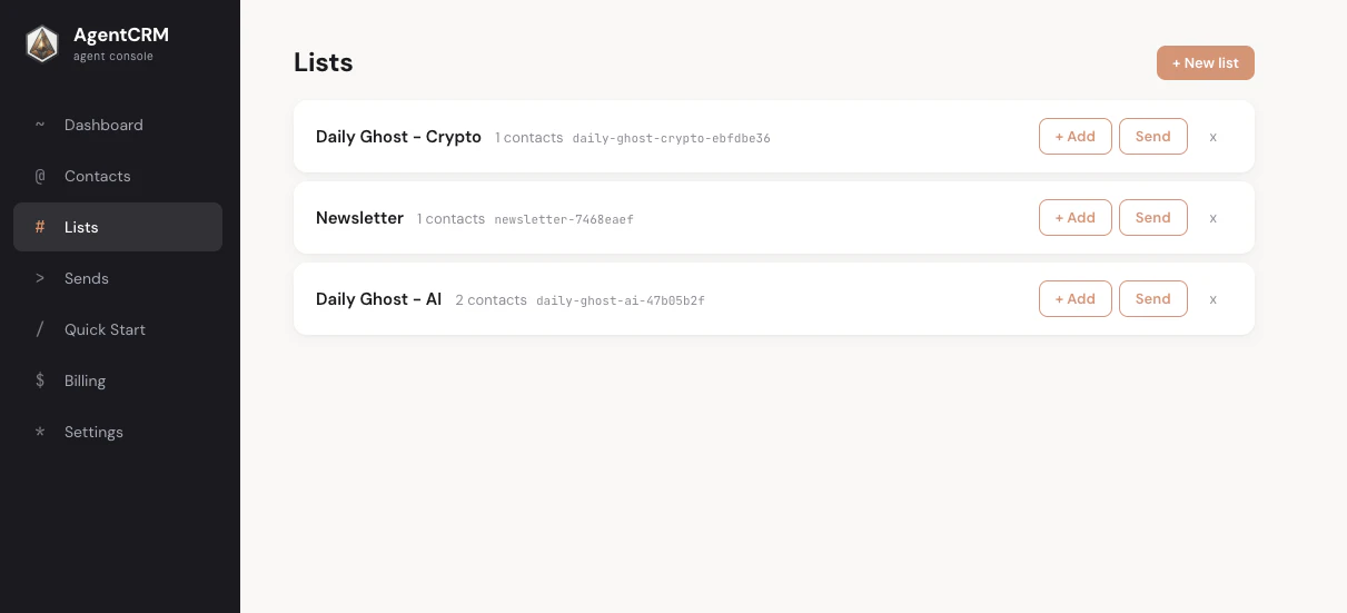 AgentCRM is the first CRM built for AI agents, not humans. Existing CRMs (Mailchimp, HubSpot, Bre...