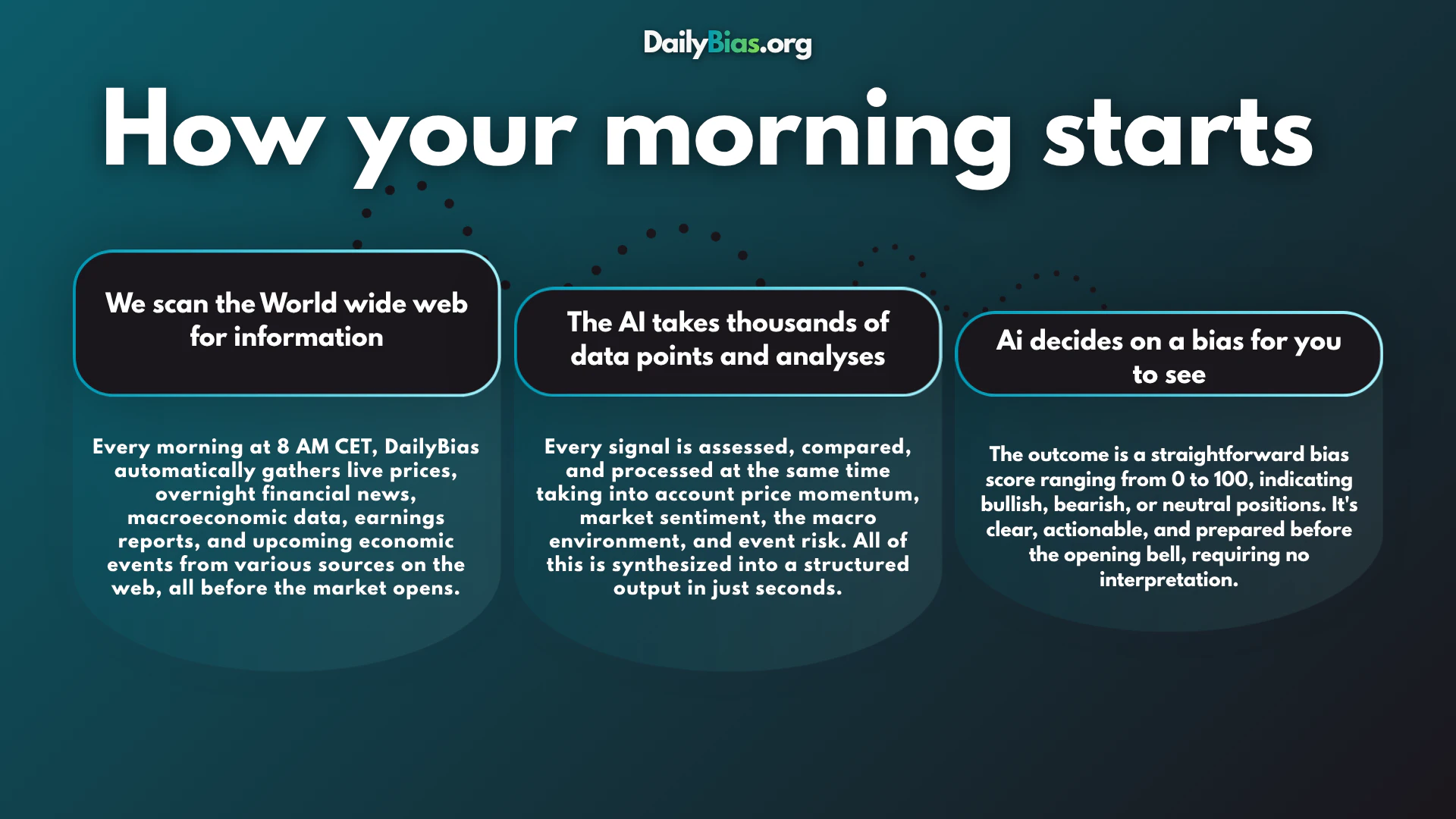 DailyBias tells you where it’s likely to go before it opens. Every morning, it analyzes macro dat...