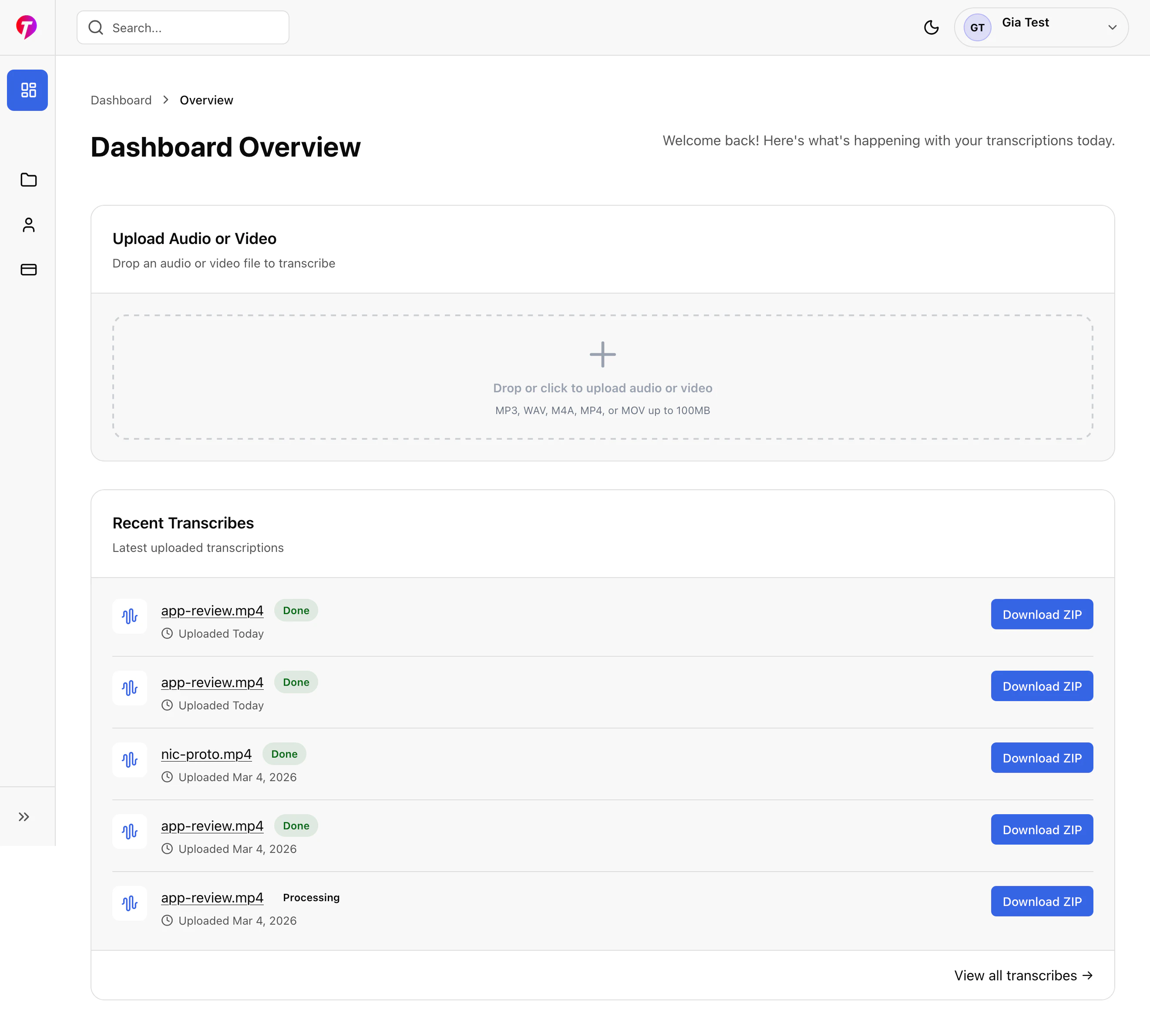 Transcribe MP4, MP3, M4A and video to text in minutes