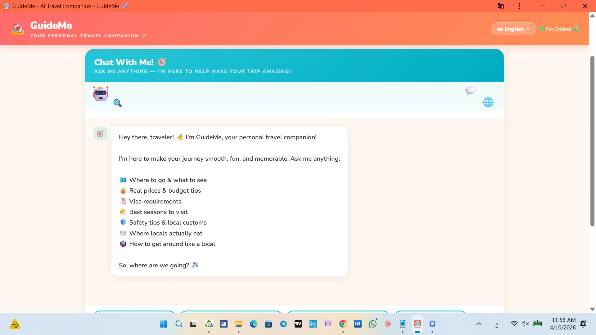 GuideMe is a free AI travel companion that helps you explore any city like a local. 🗺️ City Explo...