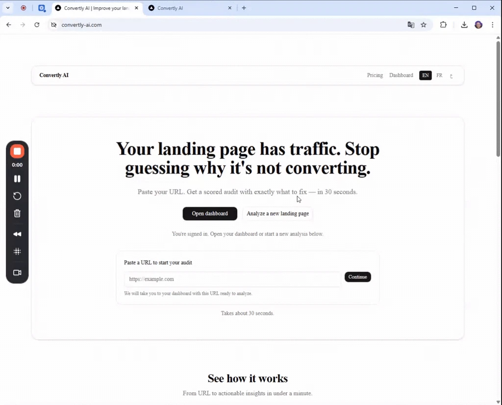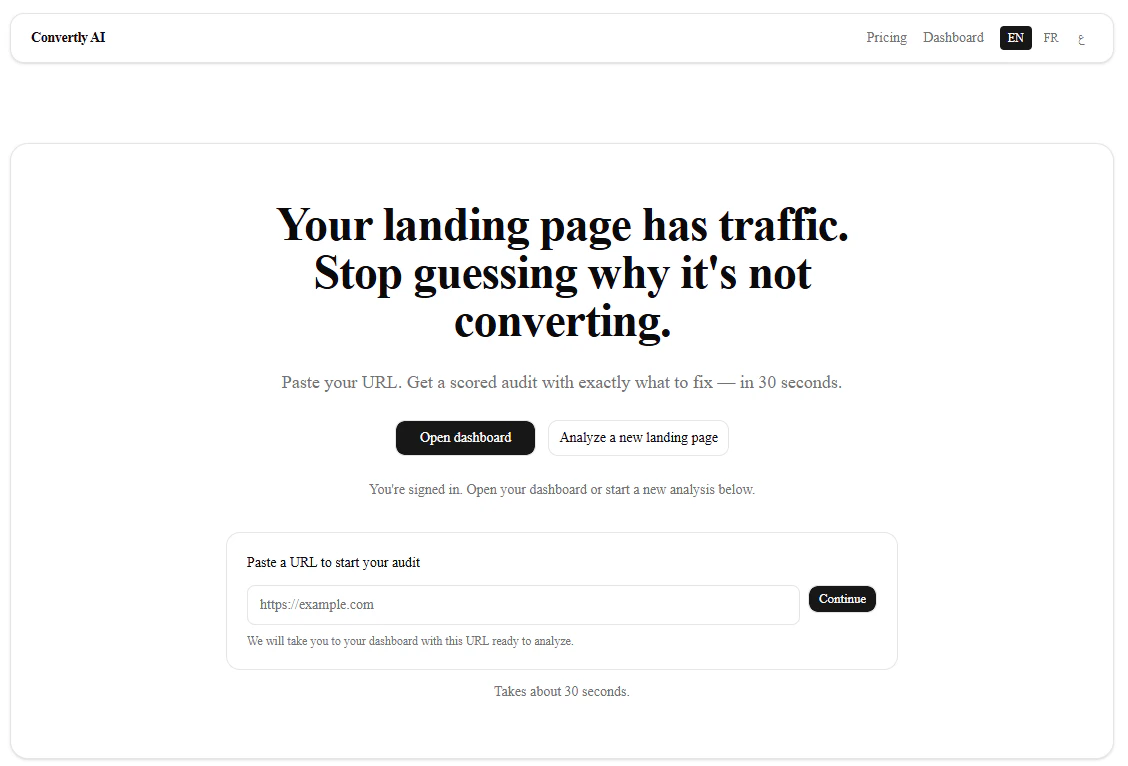 Most analyzers judge your page without knowing anything about it. Convertly AI asks first: What's...