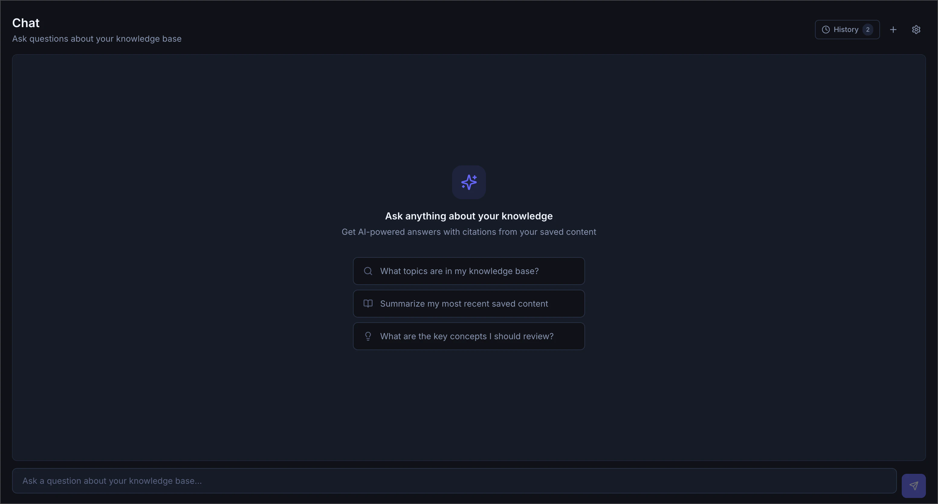 Your personal intelligence layer. Save articles, YouTube videos, PDFs, and X bookmarks with one c...