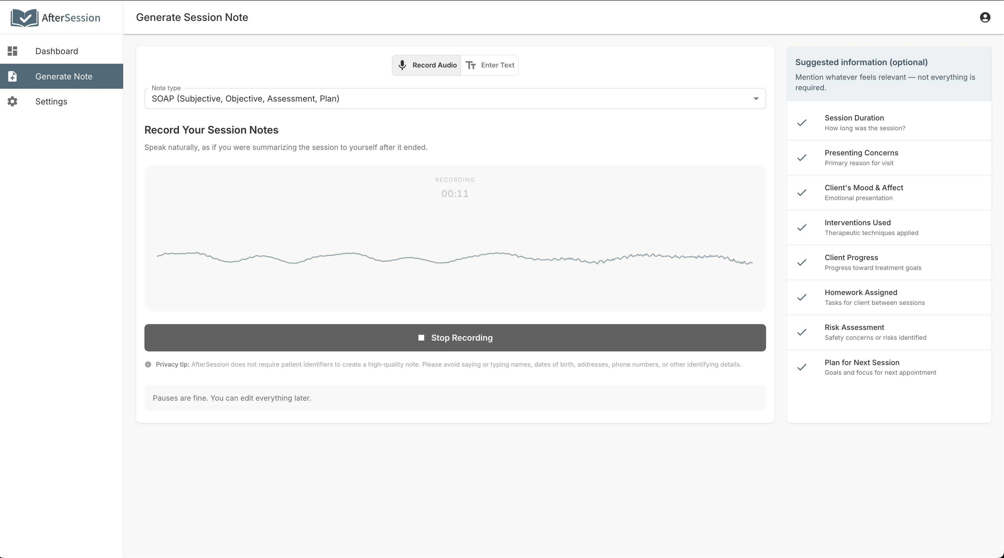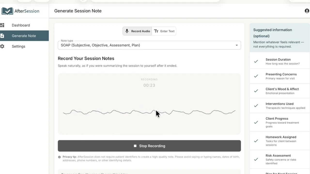 AI therapy notes without session recording