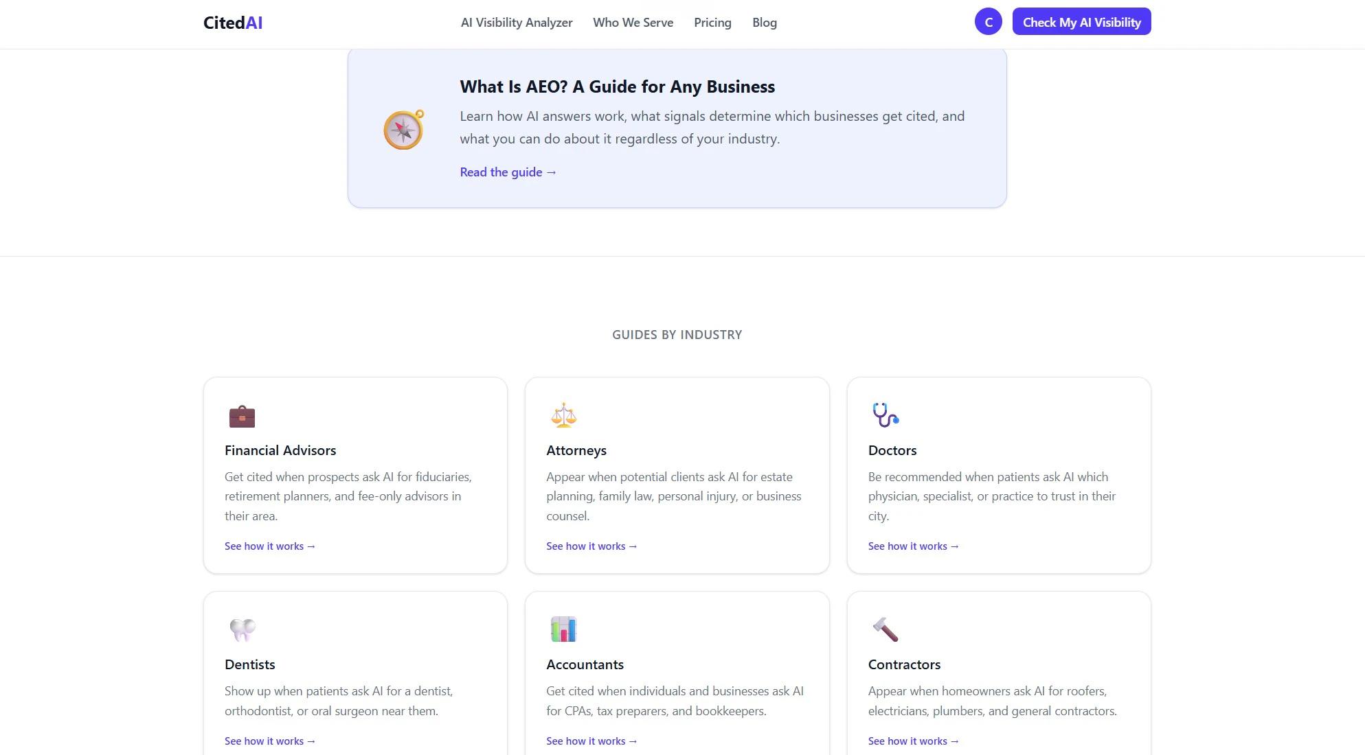 CitedAI helps local and professional service businesses get cited by ChatGPT, Perplexity, and Goo...