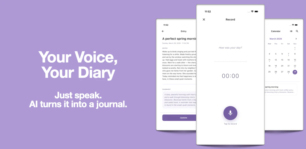 Voice journal that turns your "umms" into clean diary entry.