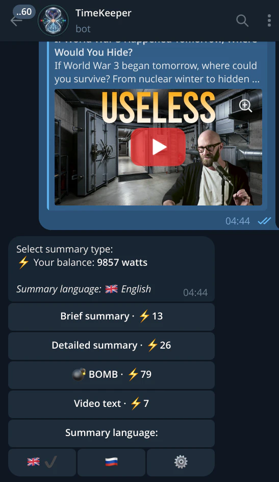 A telegram bot that turns videos into readable summaries. You get roughly 90% of video's content ...