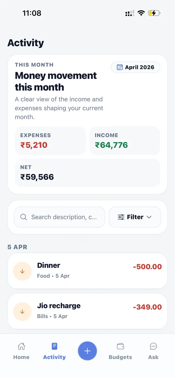 Track money naturally and ask anything about it