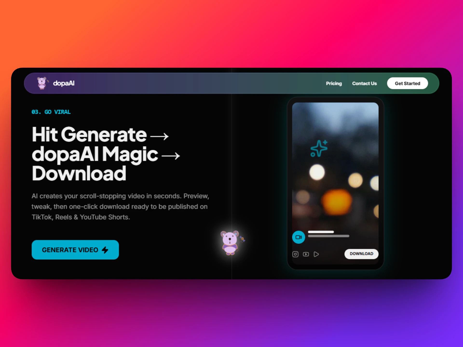 dopaAI instantly turns any URL, product page, blog, or idea into scroll-stopping viral shorts wit...