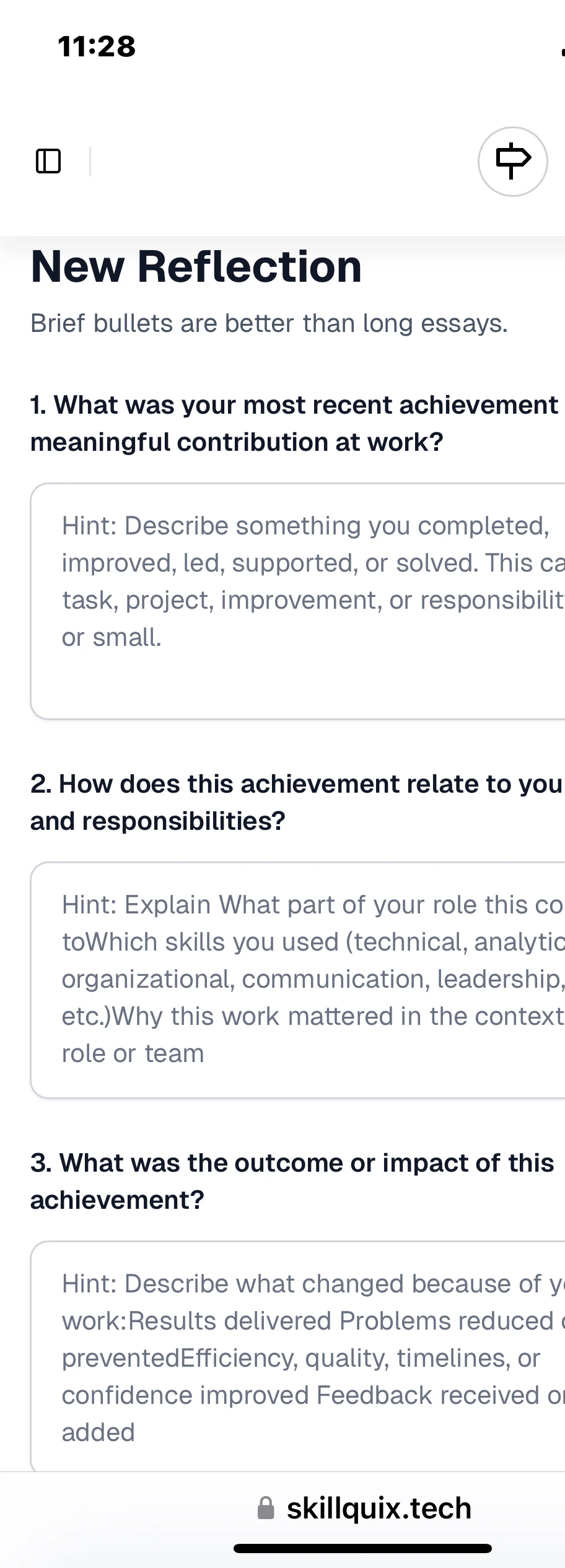 Skillquix helps professionals turn everyday work into clear skills, strong reflections, and caree...