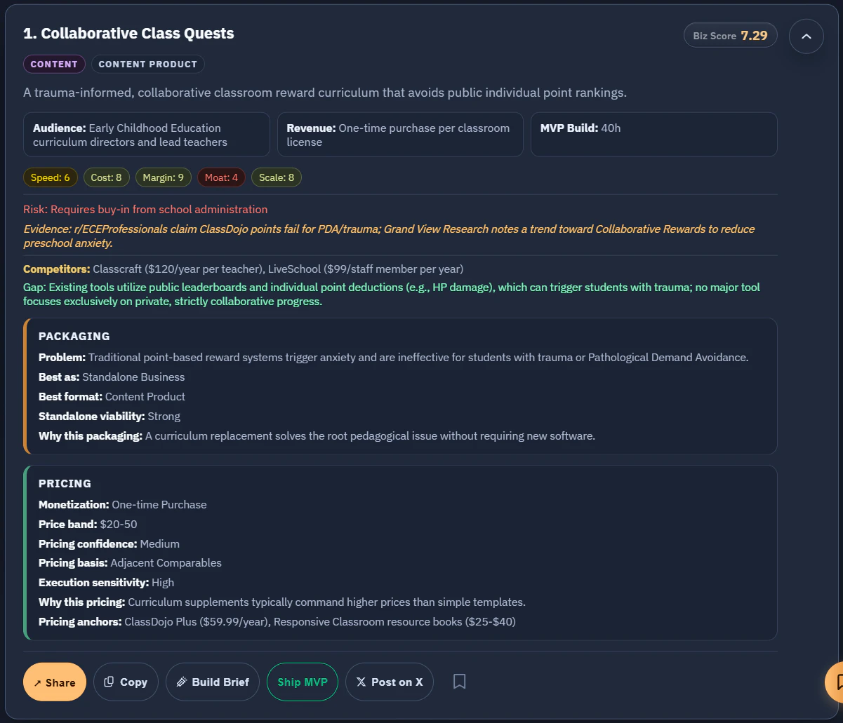Research-backed startup idea discovery for founders