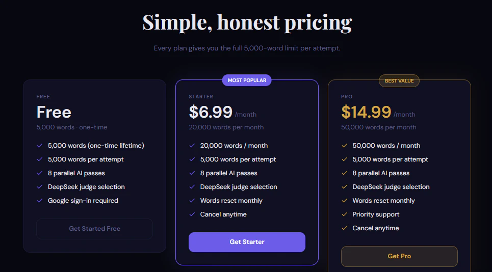 The only AI humanizer that processes up to 5,000 words in a single attempt. 8 parallel AI passes,...