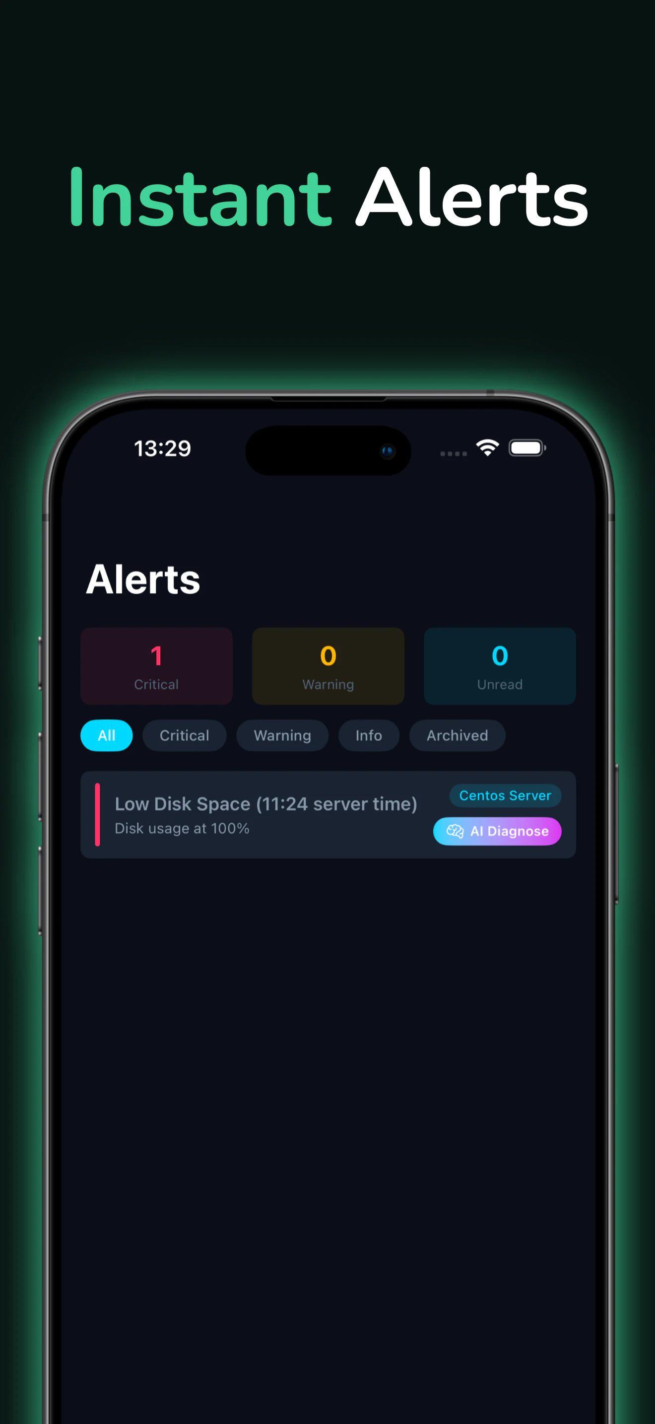 Server monitoring & diagnostics with AI from your iPhone