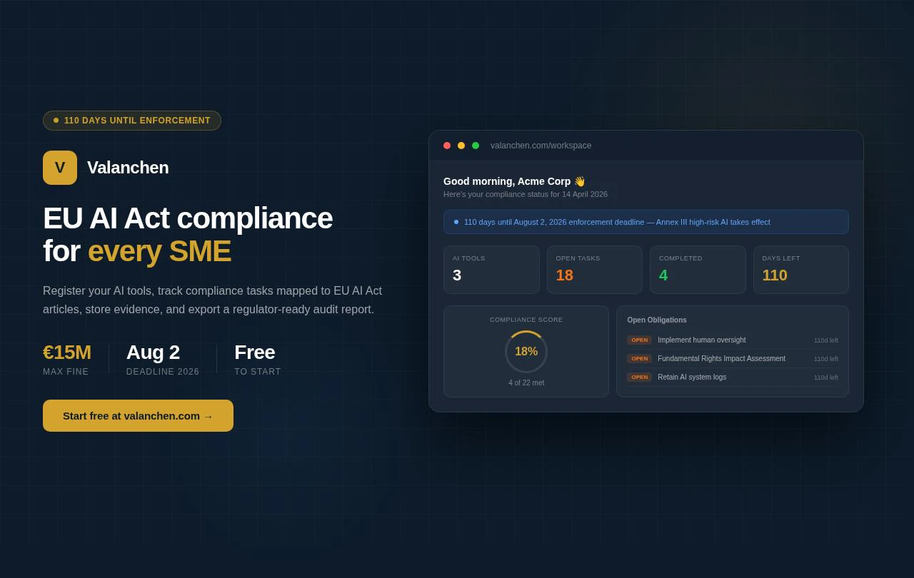 EU AI Act compliance workspace for SMEs