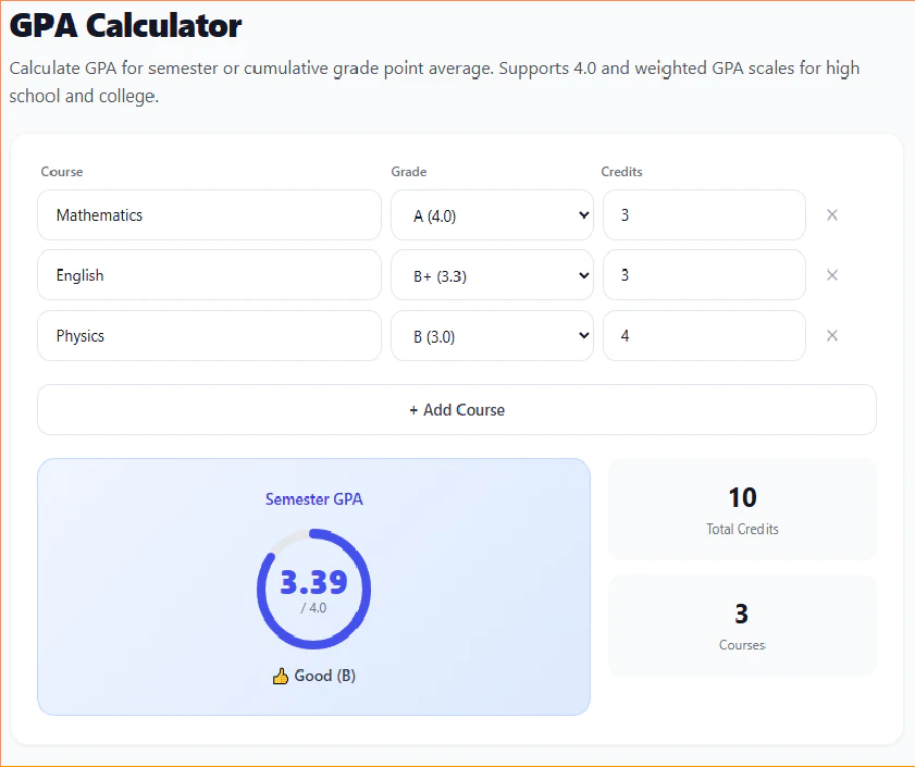 263+ free calculator — grade, GPA, mortgage, calories & more