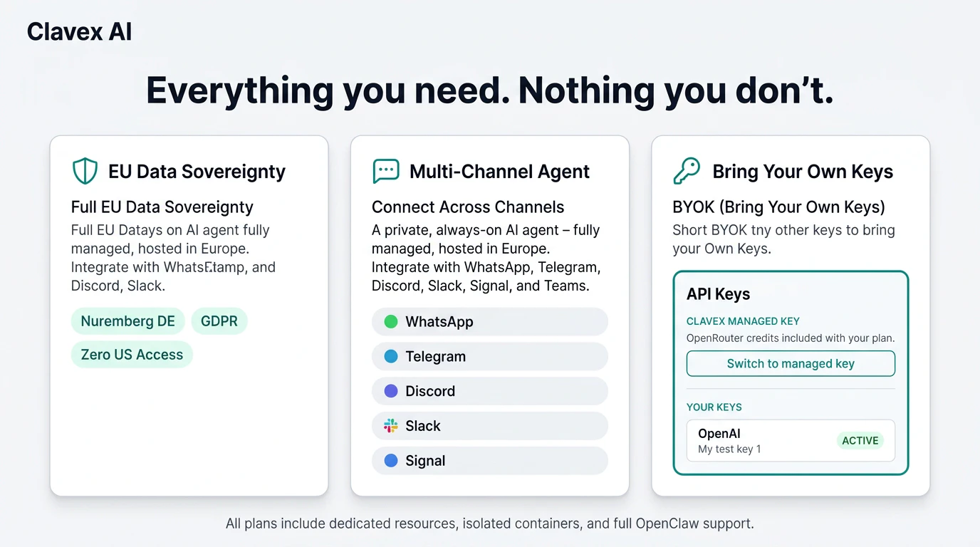 Managed OpenClaw hosting. EU jurisdiction. Zero setup.
