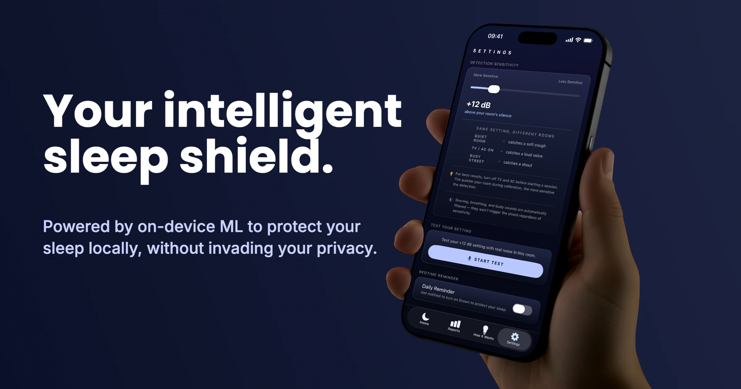Drown is a proactive audio shield designed for authentic sleep. Instead of playing continuous noi...