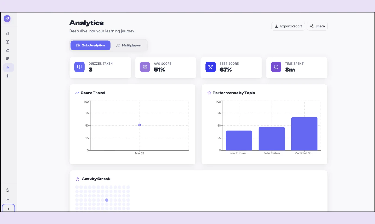 QuizForge AI lets you generate smart, adaptive quizzes from any topic, pasted text, or uploaded P...