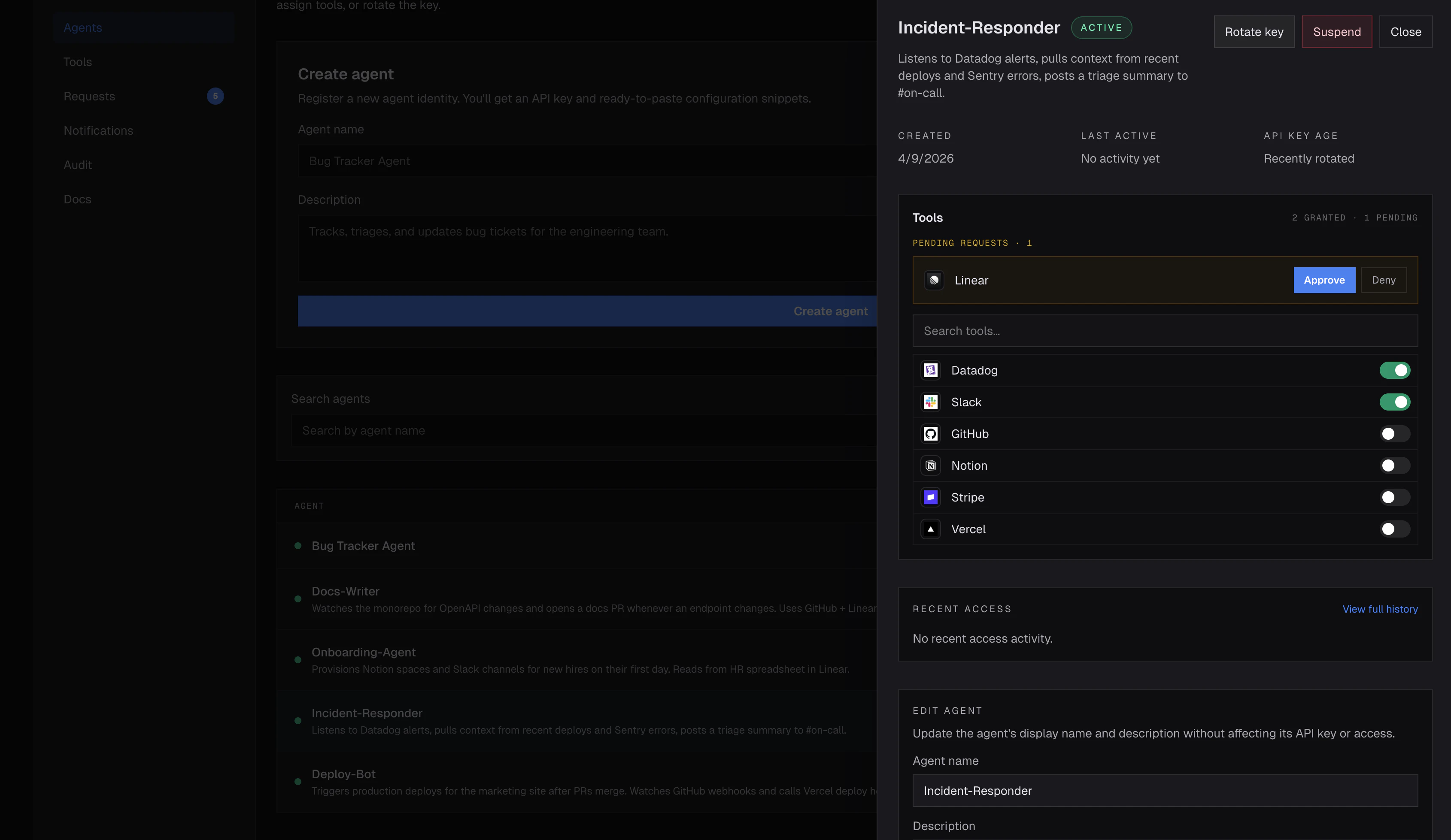 Your AI agents need API keys for GitHub, Stripe, Linear — today they live scattered in env files ...
